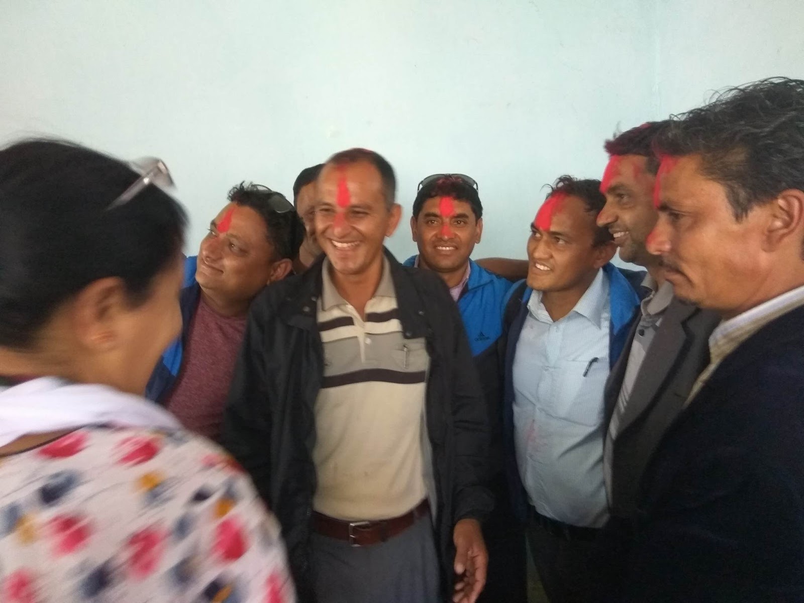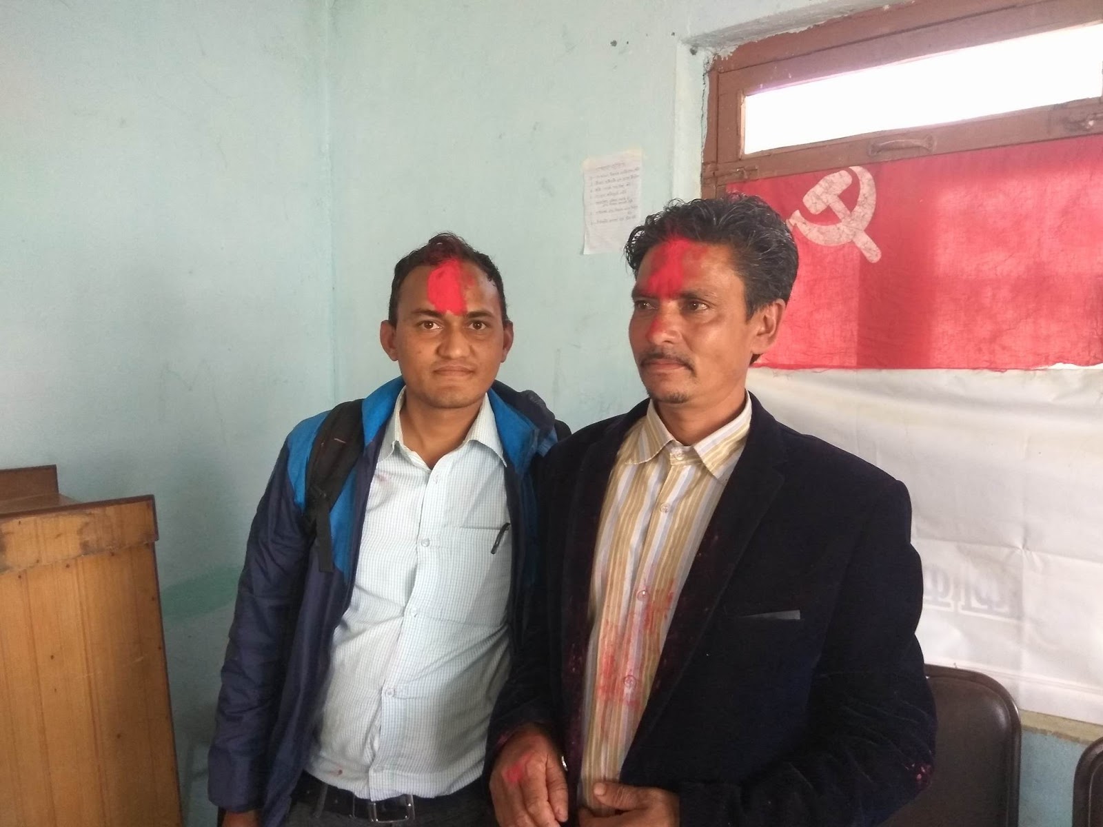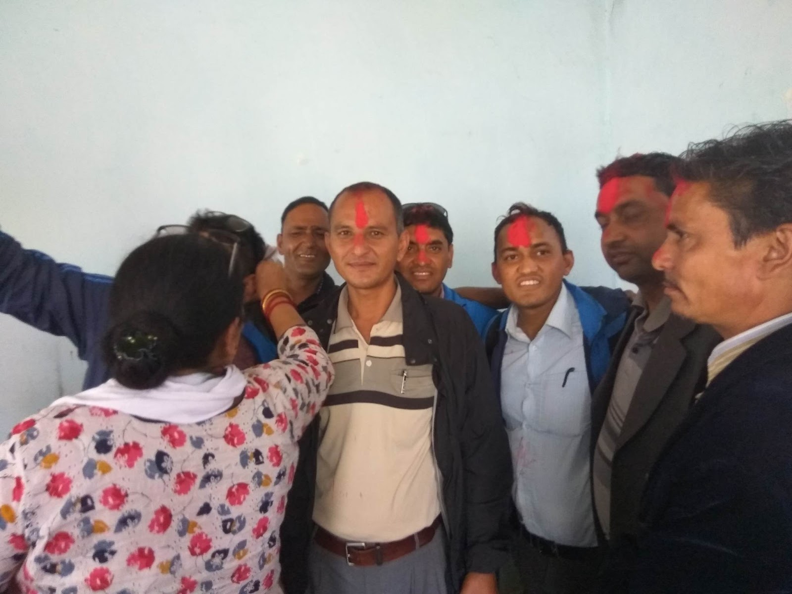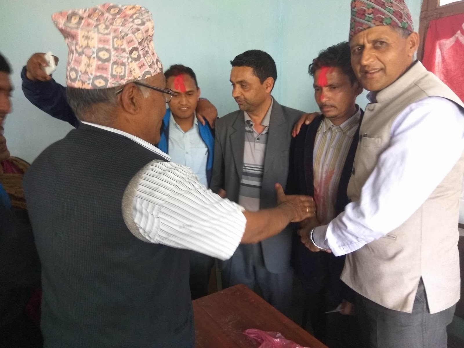 प्रवेश गर्नेहरुलाई एमाले जिल्ला अदक्ष्य चेतनारायण आचार्यले टिका लगाई स्वागत गरेका
