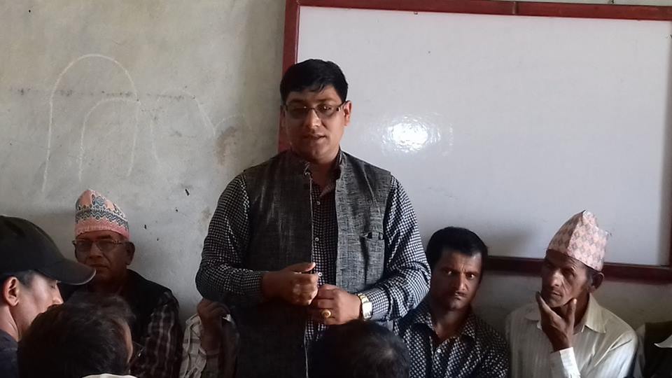 राष्ट्रिय जनमोर्चा ढाकावाङ्ग गाउँ समितिकाे बैठकलाई सम्बाेधन गर्दै भूमिकास्थान नगरपालिकाका मेयर उम्मेद्वार कबिराम खनाल ।