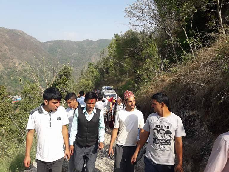 श्रृनगर यातायातको लु १ ज १५२३, लु १ ज २१५१ र देउराली यातायातको ग १ ज ४०२५ नम्बरका तिनवटा जिप, दर्जनौं मोटरसाइकल र धातिवाङ्ग बासिहरूको उपस्थित रहेको थियो ।