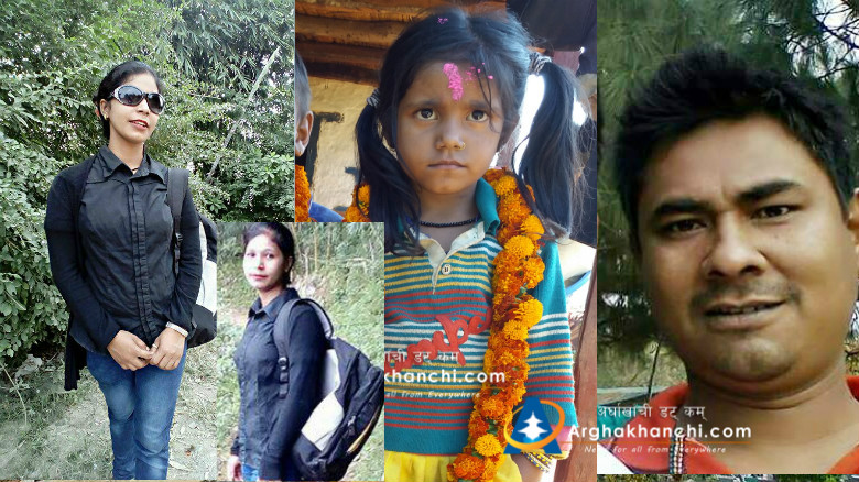 बेपत्ता कल्पना बिक बाँया,  बीचमा छोरी र राम बहादुर बिक ।