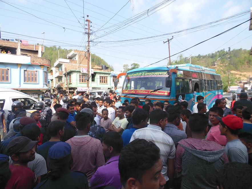विवाद भएपछि भक्तिटोल चोकमा लागेको भिडभाड