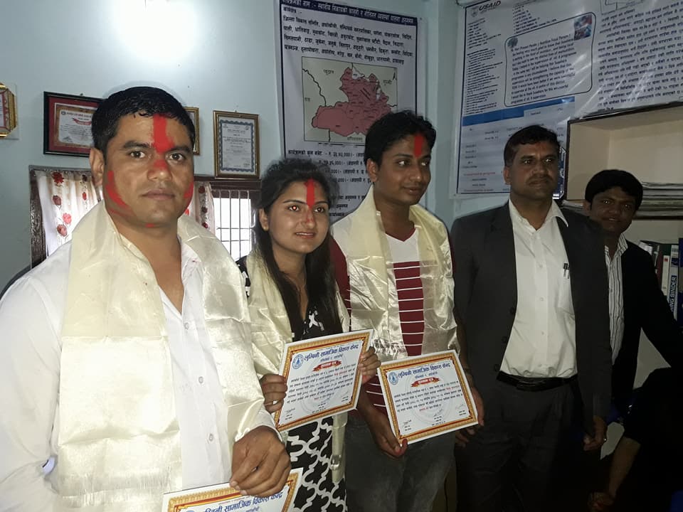 लुसाविके अन्र्तगत सञ्चालित सुआहारा पहिलो र दोस्रो चरणमा कार्यरत फिल्ड सुपरभाईजरहरु पुनाराम भुसाल, मदन पोखरेल र इन्दिरा पोखरेललाई लुम्बिनी सामाजिक विकास केन्द्रका कार्यकारी निर्देशक इन्द्रमणि पौडेलले मायाको चिनो, खादा र टिकाले संस्थामा पु-याएको योगदानको कदर गर्दै सम्मान तथा संस्थाबाट विदाई गर्नुभयो ।