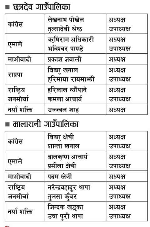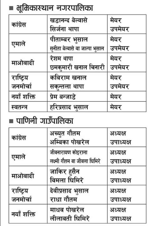 अर्घाखाँचीमा स्थानिय चुनावमा राजनीतिक दलबाट घोषणा गरेका उम्मेदवार यस्ता छन्