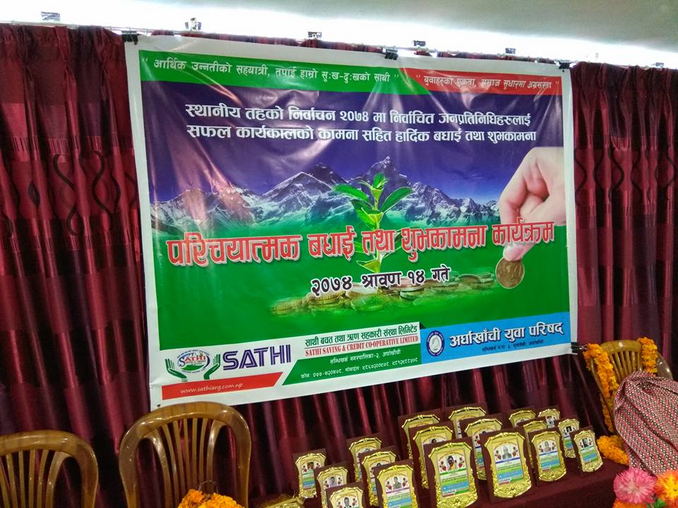 साथी बचत तथा ऋण सहकारी संस्था लिमिटेड सन्धिखर्कले ग-यो जनप्रतिनिधिहरुलाई सम्मान
