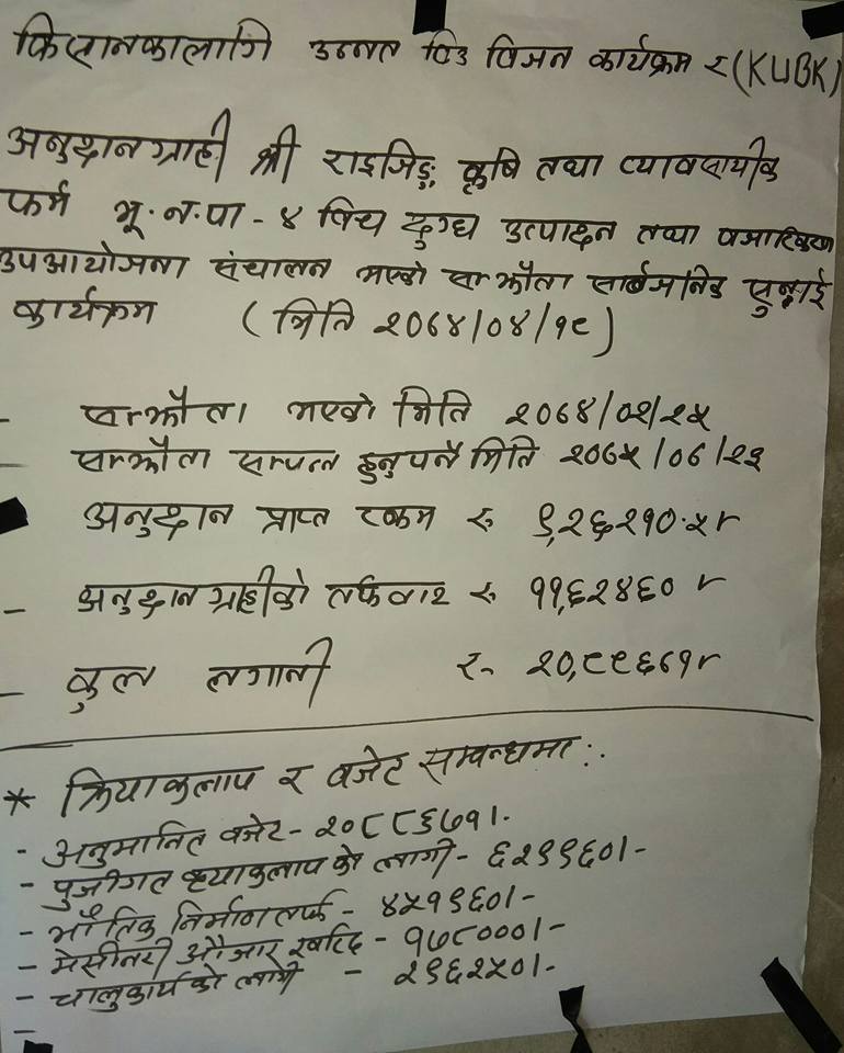 । कार्यक्रममा फर्म संचालक सागर केसीले केयुबिके संस्थाको सहयोगले फर्म संचालन गर्न निकै सहयोग पुगेको बताउदै सबैलाई कृषिको क्षेत्रमा अग्रसर भै काम गर्न आग्रह समेत गर्नु भएको थियो । अहिले उक्त फर्ममा १५ ओटा गाईहरु रहेका छन भने दैनिक झन्डै ७० लिटर दुध बजारमा बिक्री हुने गरेको छ ।