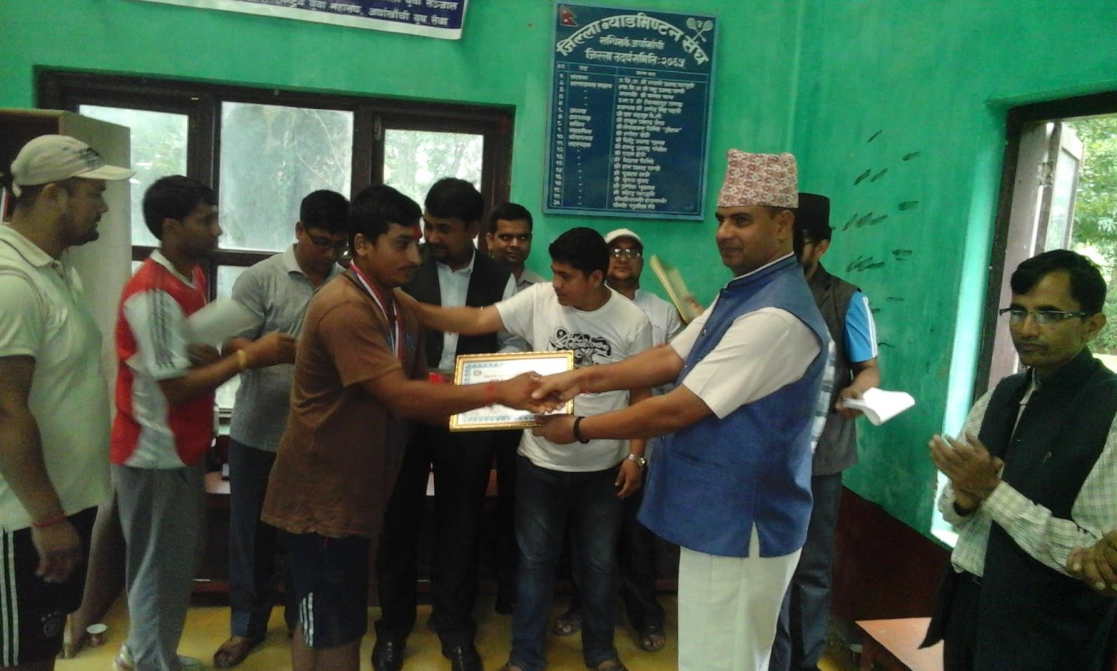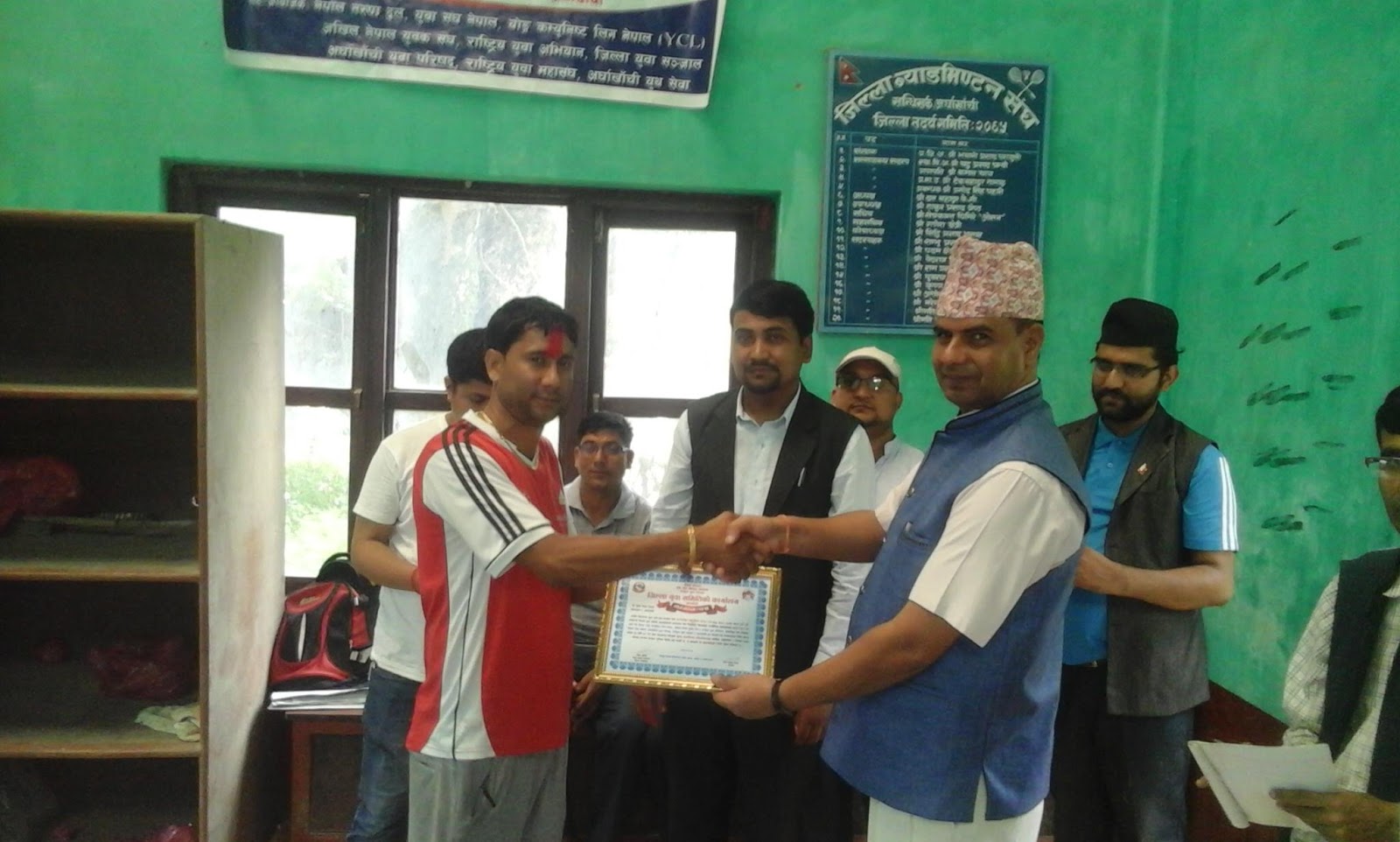 सन्धिखर्क, अर्घाखाँची । अर्घाखाँचीकाे सन्धिखर्कमा सञ्चालित खुल्ला ब्याडमिन्टन प्रतियोगिताको उपाधि अशाेक भुसालको समुहले हात पारेको छ ।