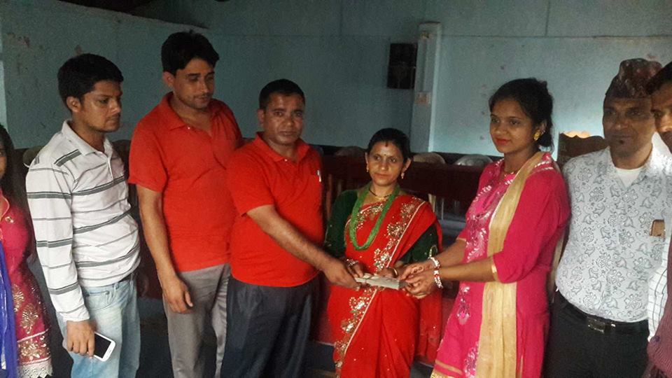 सोही पालिकामा जन्मभै हाल दुबैमा रोजगार गरी बस्दै आएका घनश्याम ज्ञवालीको सक्रियतामा संकलित एक लाख रुपैयाँ घनश्याम ज्ञवालीको श्रीमती गोमा ज्ञवाली बाट बिरामीको बहिनी अस्मिता खनाललाई एक कार्यक्रम गरी बिच हस्तान्तरण गरिएको हो ।