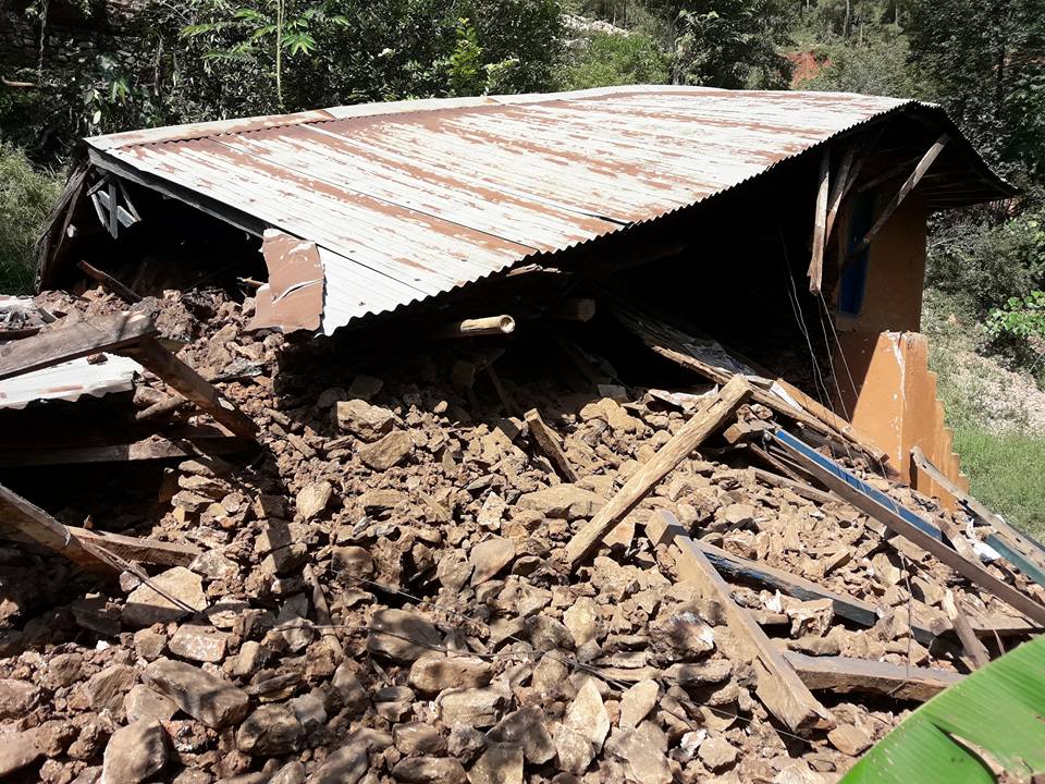 अर्घाखाँची माटेका सिद्धिमान चाैहानकाे घरमा गए राति सालझण्डी ढाेरपाटन सडककाे ढुङ्गा पल्टिदा पूर्ण क्षति भएकाे हो । उक्त घरमा भाडा गरि बस्ने गाेखुङ्गाका पुरन पुनमगर, प्रेम पुनमगर, जुना पुनमगर र सिता पुनमगर ज्यान वचाउन सफल भएका हुन् ।
