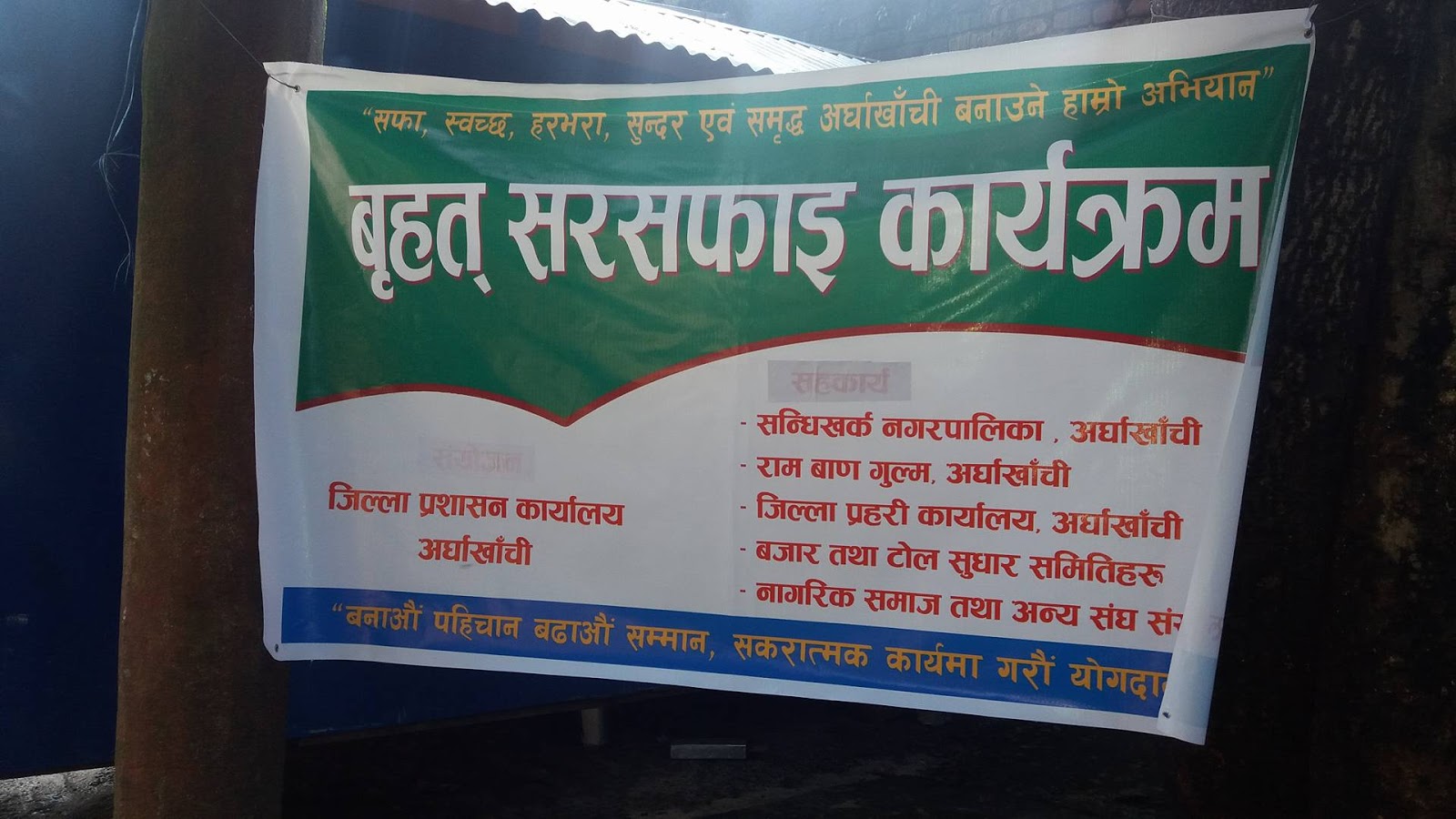 जिल्ला प्रशासन कार्यालय अर्घाखाँचीको आयोजनामा भएको सो सरसफाइ कार्यक्रममा सन्धिखर्क नगरपालिका नगरप्रमुख कमल प्रसाद भुसाल प्रमुख जिल्ला अधिकारी खिमराज भुसाल प्रहरी नायब उपरीक्षक एकनारायण कोईराला, नगर उपप्रमुख ठाकुर कुमार बिक, रामबाण गुल्मका गुल्मपति अनिल केसि, सहायक प्रजिअ नारायण खत्रि, मालपोत अधिकृत लोक बहादुर कार्की, स्थानिय सामाजिक संघ संस्था, कार्यालय प्रमुख, कर्मचारी, सुरक्षाकर्मी ( सेना, प्रहरी) उद्योगि ब्यबसायी ,समाजसेवी संचारकर्मी लगायतकाे सहभागिता रहेको थियाे।