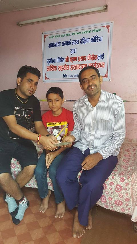 बिगत केहि समयदेखि मृगौला रोगबाट पिडित ४८ वर्षिय पोख्रेललाई अर्घाखाँची सम्पर्क मन्चले कोरियामा सहयोग अभियान चलाई संकलित भएको रकम रु ९००००/ ( नब्बे हजार रुपैया) आज हस्तान्तरण गरिएको हो ।