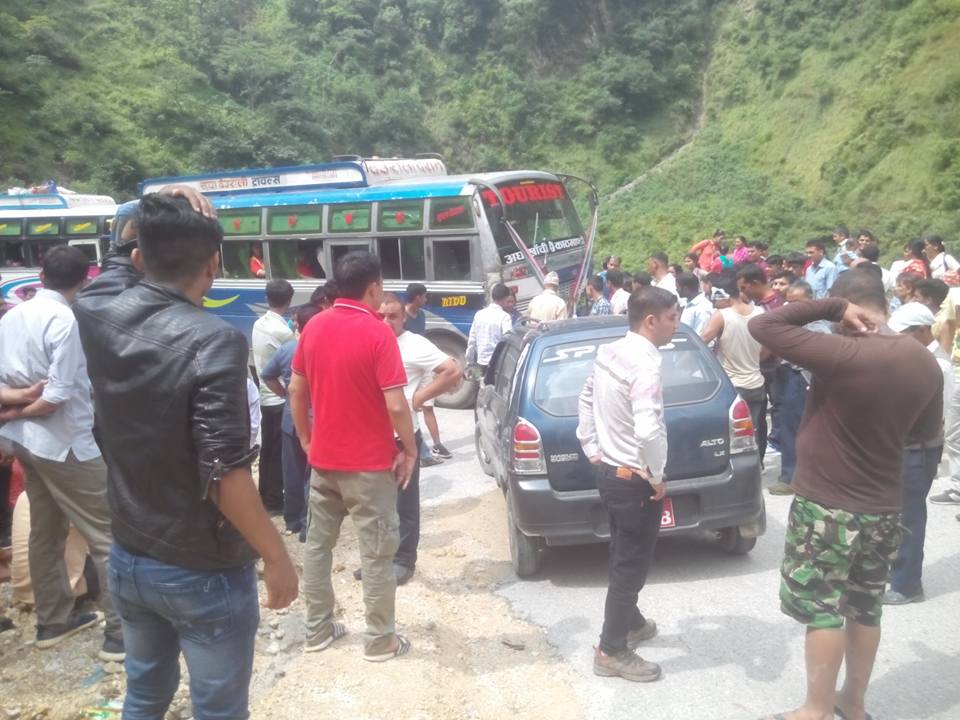 दुर्त गतीमा भएका कारण बस, जीप ठोक्किएका हुन् । गाडी ठोक्किएपछि सडक केही समय अवरुद्द भएको थियो ।
