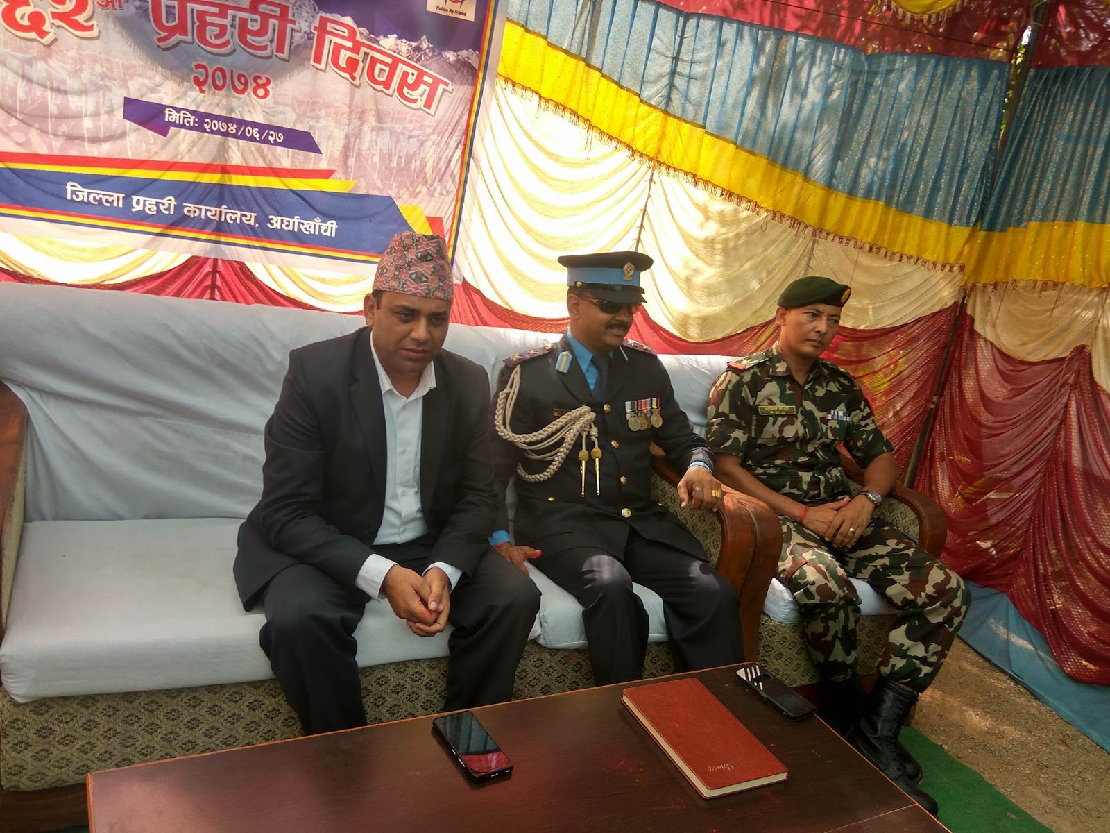 दिवसमा सहभागी वक्ताहरुले सरकारले प्रहरीको मनोबल उच्च हुने वातावरण तयार गर्नुपर्नेमा जोड दिएका थिए । जिल्ला प्रहरी कार्यालय अर्घाखाँचीमा आयोजना गरिएको कार्यक्रममा प्रमुख जिल्ला अधिकारी खिमराज भुसाल, प्रहरी नायव उपरिक्षक एकनारायण कोइराला, नेपाल पुर्व प्रहरी संगठनका डिलाराम पाण्डे, पत्रकार महासंघका सुर्य भुसाल लगायतले बोलेका थिए ।