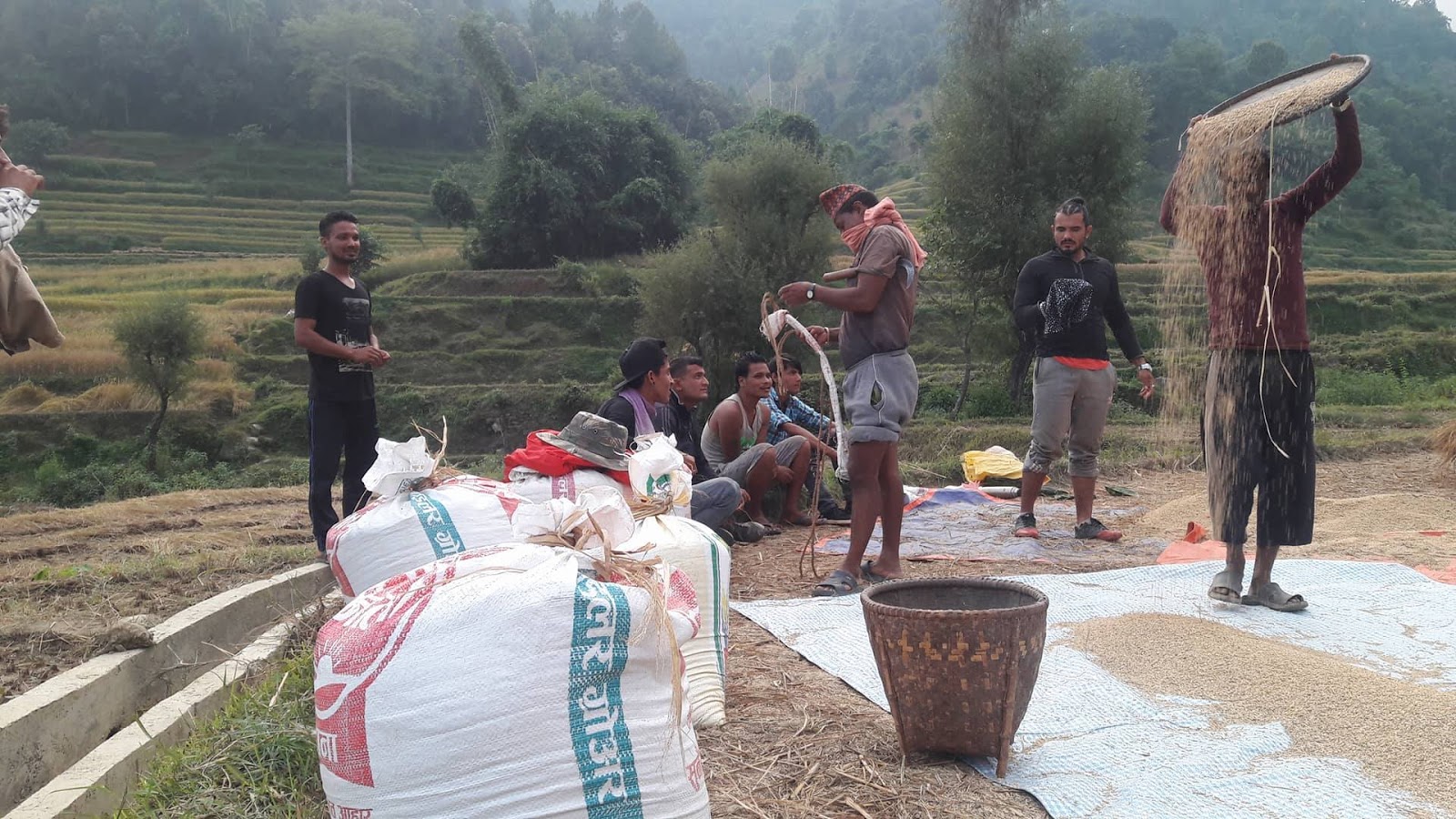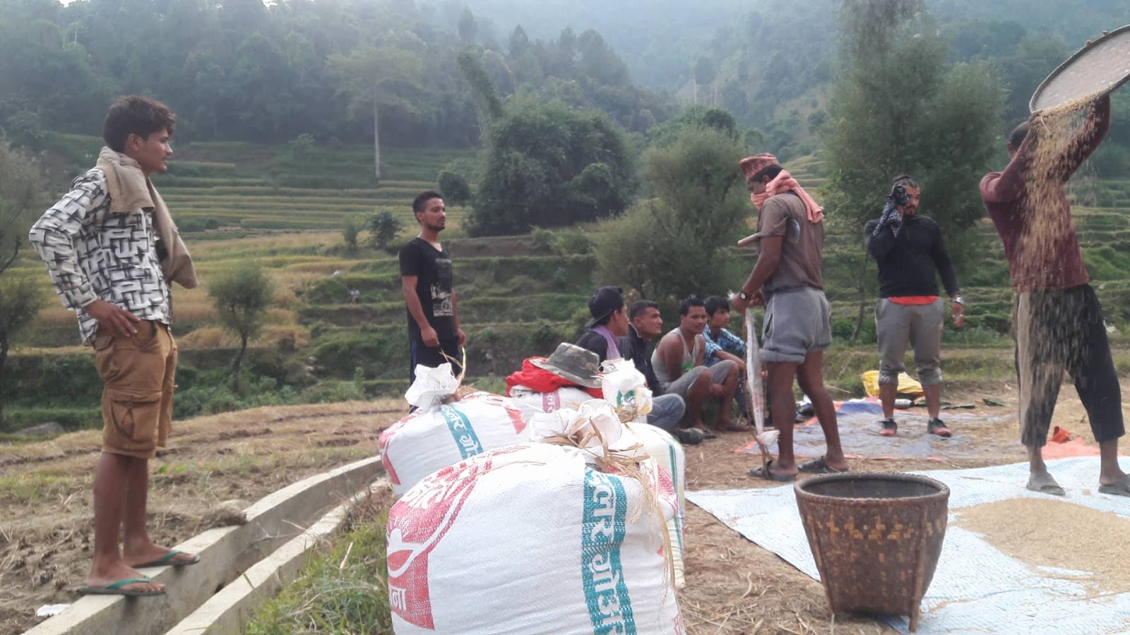 सन्धिखर्क नगरपालिका वार्ड न – १० को अर्घा बेल्टारिको बगर फाटमा धान बाली उठाउदै गर्दा अर्घाखाँचीडट्कमसँगको सानो भेटमा उहाका किसानहरुसँग कुराकानी गर्दा तिहारको रम्झम र रमाइलो अझै सकिएको छैन यो धानबाली हामीहरु बर्ष दिन भरी बसेर खाने खेती हो धान बाली भित्र्याउन ब्यस्तताको कारण तिहारमा आउने भैलो खेलपनि राम्रोसँग हेर्न पाएका छैनौ ।