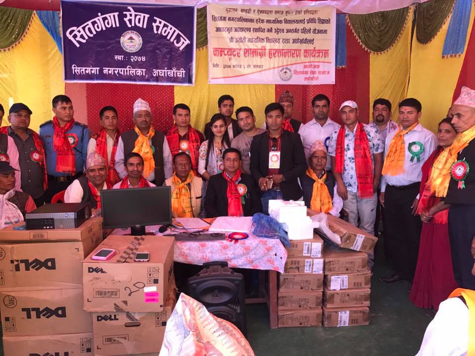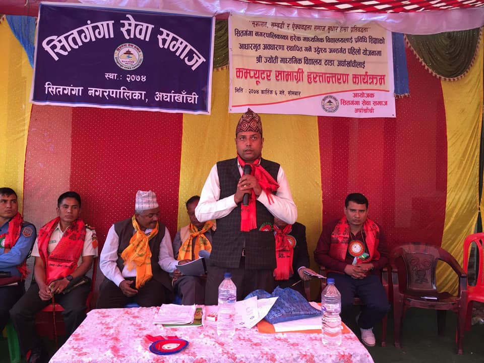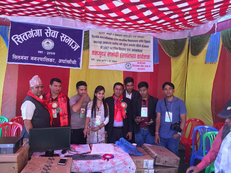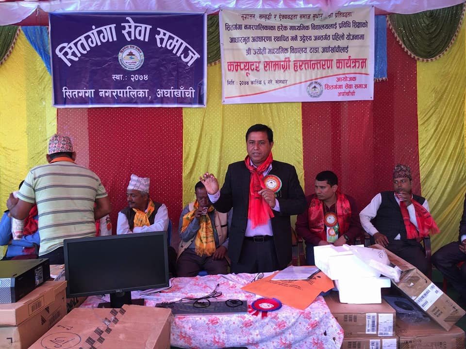 सितगंगा नगरपालिका भित्र रहेका हरेक शैक्षिक सस्थाहरुमा प्राबिधिक शिक्षा काे बेषिक अबधारणा स्थापित गर्ने मुख्य उदेस्य का साथ अगाडि बढाईएकाे याेजना अन्तरगत अाज नब गठित सितगंगा सेवा समाज ले तेस्राे याेजना अन्तरगत सितगंगा नगरपालिका साबिक ठाडा गाबिसमा रहेकाे श्री ज्याेति माबिमा विभिन्न शैक्षिक सामाग्री हस्तान्तरण गरिएको हो ।