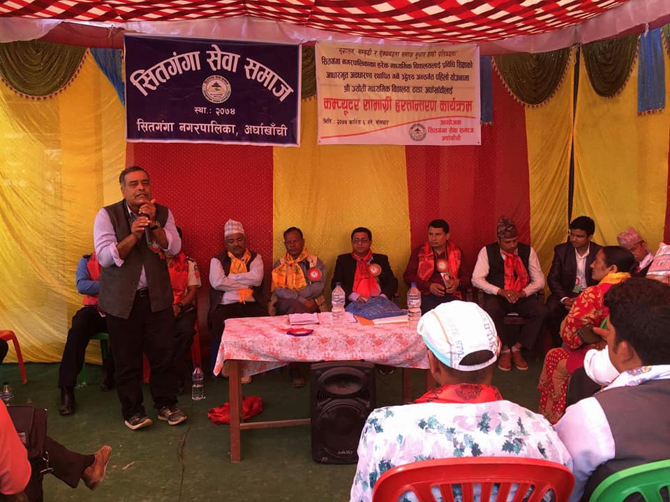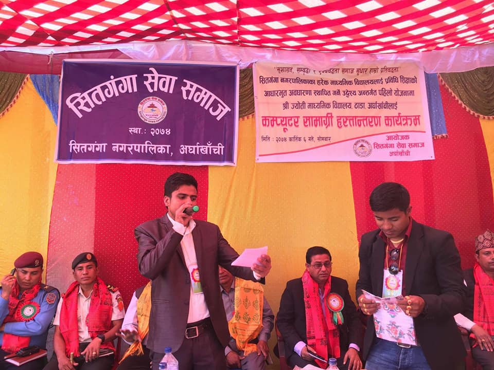 ठाडा, अर्घाखाँची (अर्घाखाँचीडट्कम) । शितगंगा सेवा समाजको शैक्षिक अभियान अन्तर्गत आज अर्घाखाँची जिल्लाको शितगंगा नगरपालिका स्थित श्री ज्योती बहुमुखी क्याम्पस ठाडामा शैक्षिक सामाग्री हस्तान्तरण कार्यक्रम सम्पन्न भएको छ ।