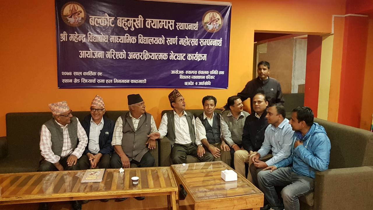 अन्तरक्रियात्मक कार्यक्रममा बोल्दै बल्कोटमा रहेको महेन्द्र मावि निकै ऐतिहासिक रहेको, यहाबाट उत्पादित जनशक्ति राज्यको उच्चतहमा पुगेको स्मरण गर्दै उक्त विद्यालय २०२० साल बैशाख २० गते स्थापना भएको दस्तावेजमा उल्लेख रहेको विद्यालयका पूर्व प्राचार्य ठाकुर प्रसाद पाण्डेले बताउनु भयो ।