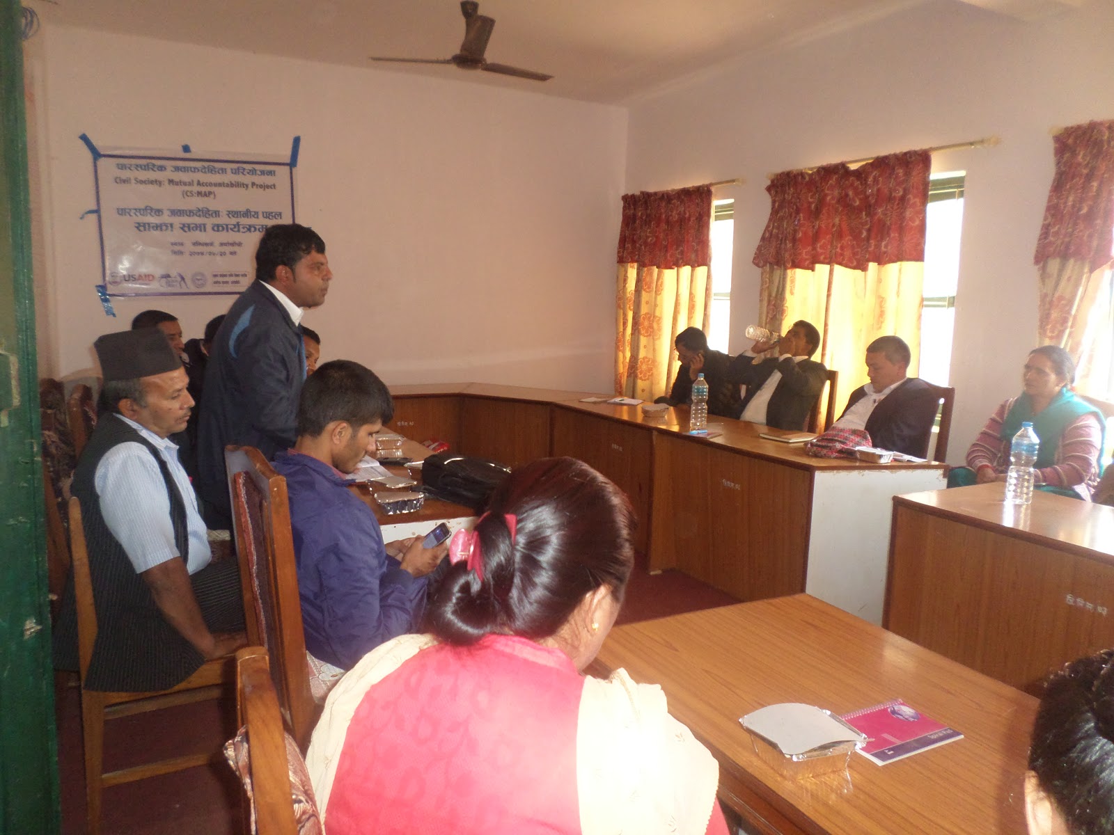एकीकृत ग्रामीण विकास समाज गुल्मीका अध्यक्ष हिरा अर्याल, अर्घाखाँची शाखा अध्यक्ष हृदय कुमार भुसालले सार्वजनिक निकायलाई आपसी छलफल र अन्र्तक्रियाबाट जवाफदेहि बनाउन परियोजना सञ्चालन भएको बताउनुभयो । राज्यको सेवा प्रवाहमा प्रभावकारीता ल्याउन सेवाप्रदायक र सेवा ग्राही पनि सचेत बन्नुपर्नेमा सहभागीको जोड रहेको थियो । कार्यक्रममा जिल्ला समन्वय समितिका प्रमुख पिताम्बर शर्माको अध्यक्षता, इन्सेक प्रतिनिधी नारायण भुसालको सञ्चालन रहेको थियो । पारस्परिक जवाफदेहिता परियोजना जिल्ला कार्यक्रम अधिकृत बसन्त श्रेष्ठले जिल्लामा शिक्षा, स्वास्थ्य र कृषिका समस्या तथा सवालको बारेमा जानकारी गराउनुभएको थियो । परियोजना जिल्लाको सन्धिखर्क नगरपालिकाको ११ र १२ डिभर्ना र छत्रदेब गाउँपालिकाको भवगतिमा लागु भैरहेको छ ।