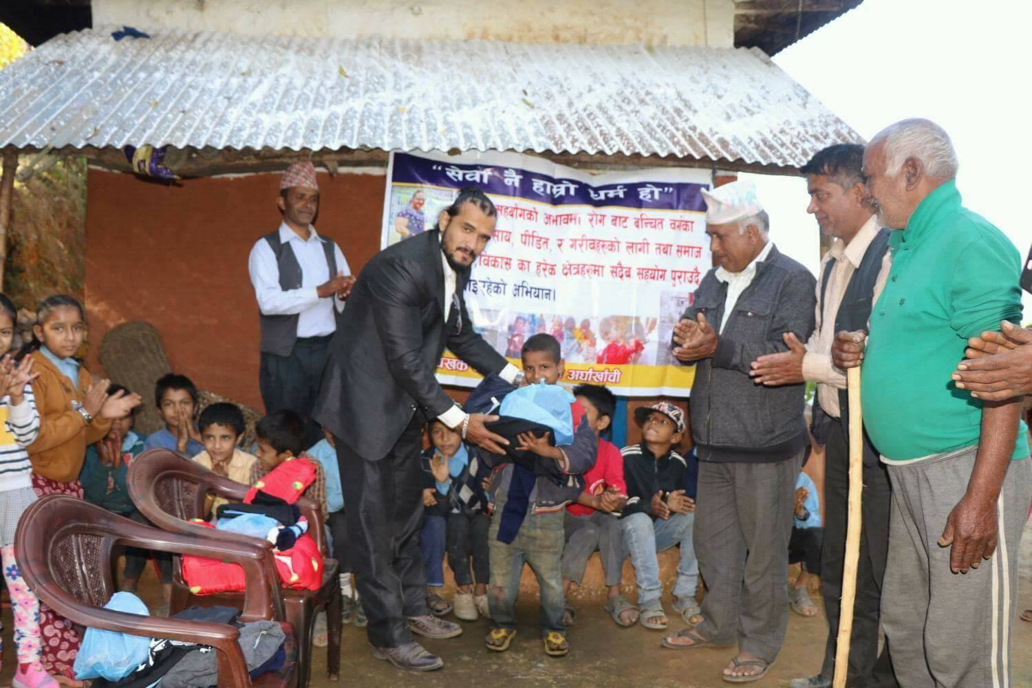 मरेङ, अर्घाखाँची (अर्घाखाँचीडट्कम) । सेवा नै हाम्रो धर्म !  अर्घाखाँची जिल्लाका एक समाजसेवी युवाले मालारानी गाउँपालिका वार्ड न – १ मरेङका टुहुरा बालबच्चाहरुलाई जाडोमा लगाउने लत्ताकपडा र सम्पुर्ण  स्कुलका ड्रेस लगायत हस्तान्तरण गरिएको छ ।