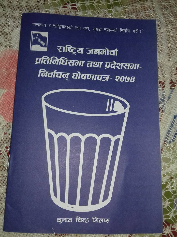 सन्धिखर्क, अर्घाखाँची (अर्घाखाँचीडट्कम) । मंसिर २१ गते दोस्रो चरणमा हुन लागेको प्रतिनिधि तथा प्रदेश सभा निर्बाचनको निम्ती राष्ट्रिय जनमोर्चा अर्घाखाँचीले आफ्ना चुनाबी कार्यक्रम तथा प्रतिबद्धतापत्र आज सार्बजनिक गरेको छ ।
