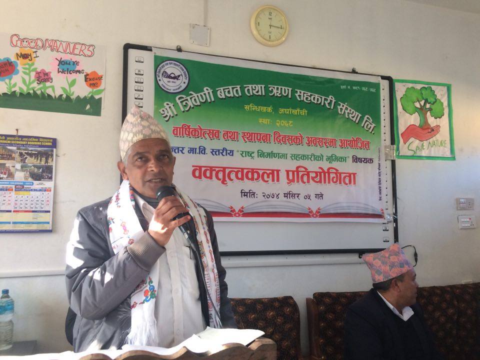 राष्ट्र निर्माणमा सहकारिको भुमिका बिषयक वक्तृत्वकला प्रतियोगितामा जिल्लाका २२ वटा माध्यमिक विद्यालयका विद्यार्थीहरुको सहभागीता रहेको थियो । प्रतियोगितामा ज्ञान प्रकाश मावि सनपा १२ सल्लीकोटका विकाश वस्याल प्रथम, सन्धिखर्क ग्रीन ईङ्गलिस बोर्डिङ्ग स्कुलका सुभेच्क्षा खनाल द्धितीय र युवा वर्ष जनता रवि चित्र मावि हटारी नेटाका सन्ध्या वाग्ले तृतीय भएका छन ।