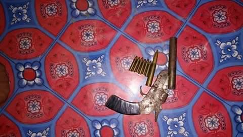 सन्धिखर्क नगरपालिका-१ रातलेका ६० वर्षीय शालिकराम खनाल भन्ने गोबिन्द खनाललाई उनको घरको बाकसभित्र प्लाष्टिकले बेरी लुकाई राखिएको कटुवा पेस्तोल १ थान, त्यसको गोली लाईब ६ राउण्ड तथा लोडमा रहेको १ राउण्ड गरी जम्मा ७ राउण्ड सहित शुक्रबार प्रहरीले पक्राउ गरेको हो ।