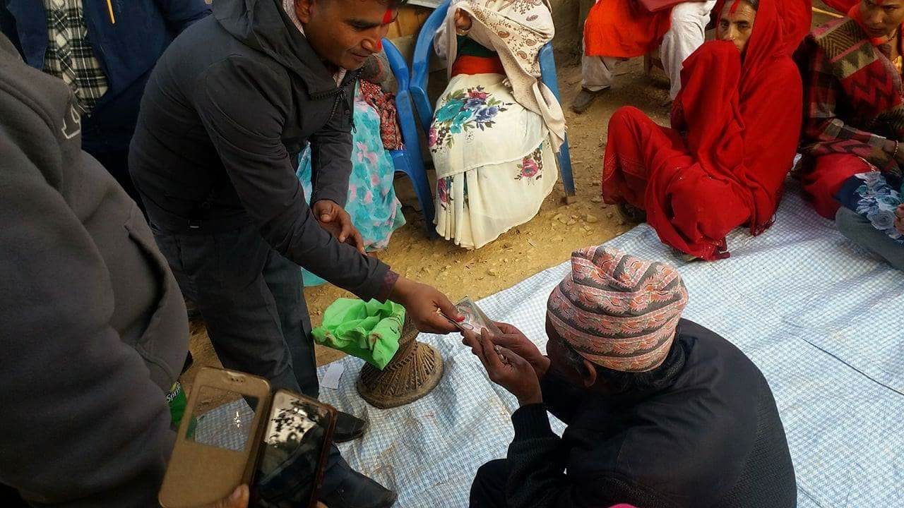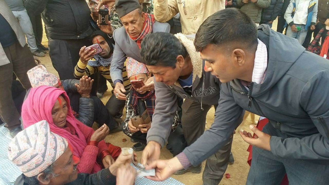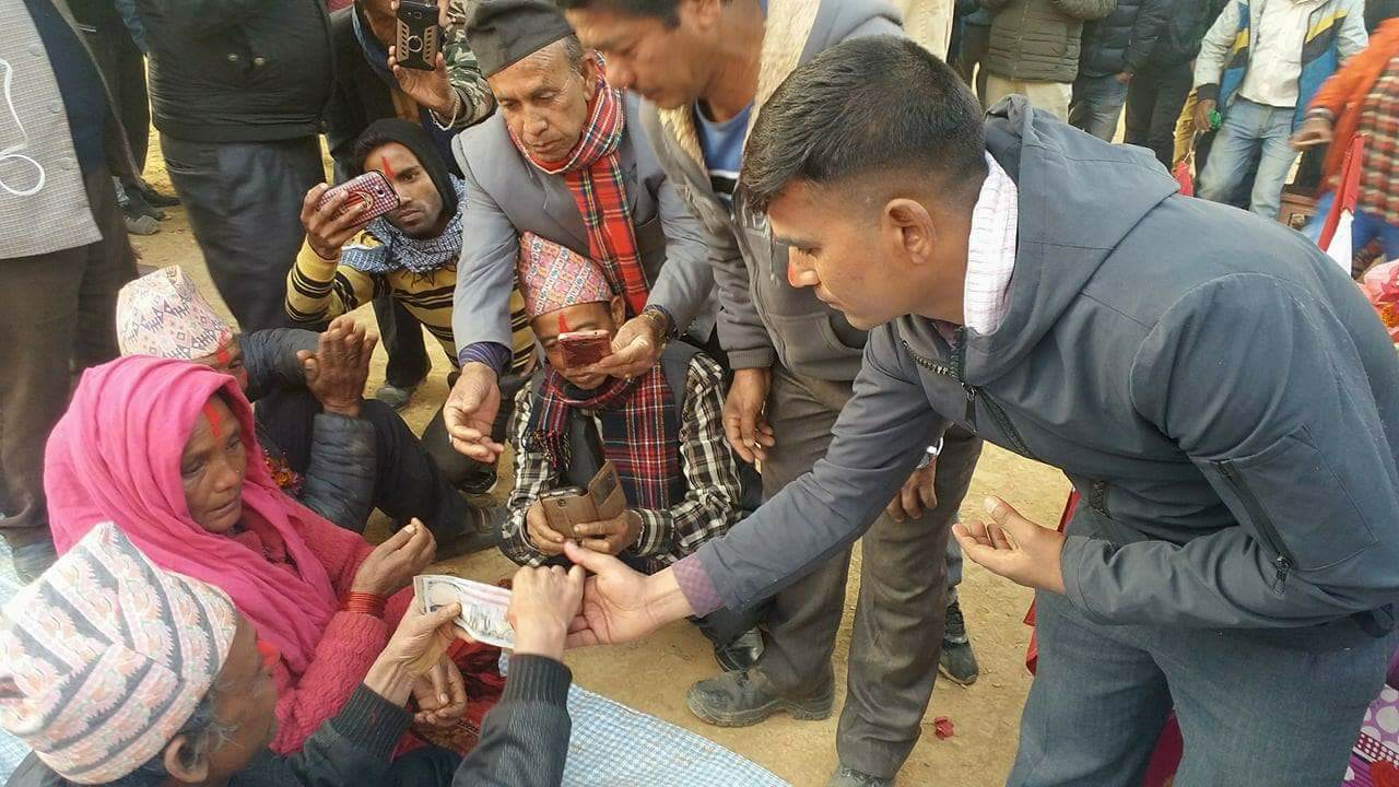 नेपाली कांग्रेसका नेता तथा नवनिर्वाचित वार्ड अध्यक्ष नारायण खड्काले सन्धिखर्क नगरपालिका १२ झेडीबजारमा गरिएको पार्टीको कार्यक्रममा सन्धिखर्क १२ झेडीका अपाङ्ग सन्त बहादुर बिकलाई व्हीलचेयर किन्नको लागि ८ हजार रुपैया प्रदान गरेका हुन् । उक्त सहयोग रकम अपाङ्ग सन्त बहादुर बिकलाई टिका लगाएर हस्तान्तरण गरेका थिए ।