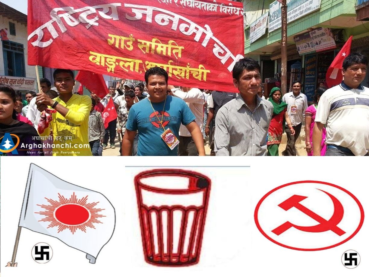 सन्धिखर्क, अर्घाखाँची (अर्घाखाँचीडट्कम) । अर्घाखाँची जिल्लामा मंसिर २१ र २३ गते सम्पन्न प्रतिनिधिसभा र प्रदेशसभा निर्वाचनको समानुपातिकतर्फको मतगणना सार्वजनिक भईरहेको बेला जिल्लाको तेस्रो राजनीतिक शक्ति राष्ट्रिय जनमोर्चाबाट समानुपातिकमा आधा भन्दा धेरै मत एमालेको सूर्य र माओवादी केन्द्रको गोलाकारभित्र हसिया हथौडा परेको देखिएको छ ।