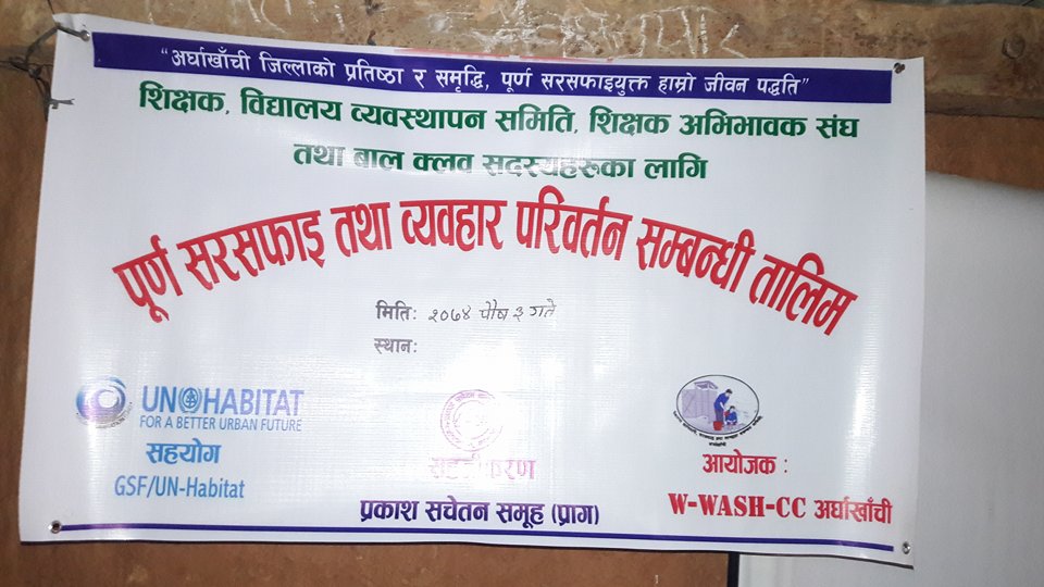 शिक्षक, विद्यालय व्यवस्थापन समिति, शिक्षक अभिभावक संघ र बाल क्लबका सदस्यहरूकाे लागि पुर्ण सरसफाइ तथा व्यवहार परिवर्तन सम्बन्धि तालिम अाज धनचाैरमा सञ्चालन गरिएको हो।