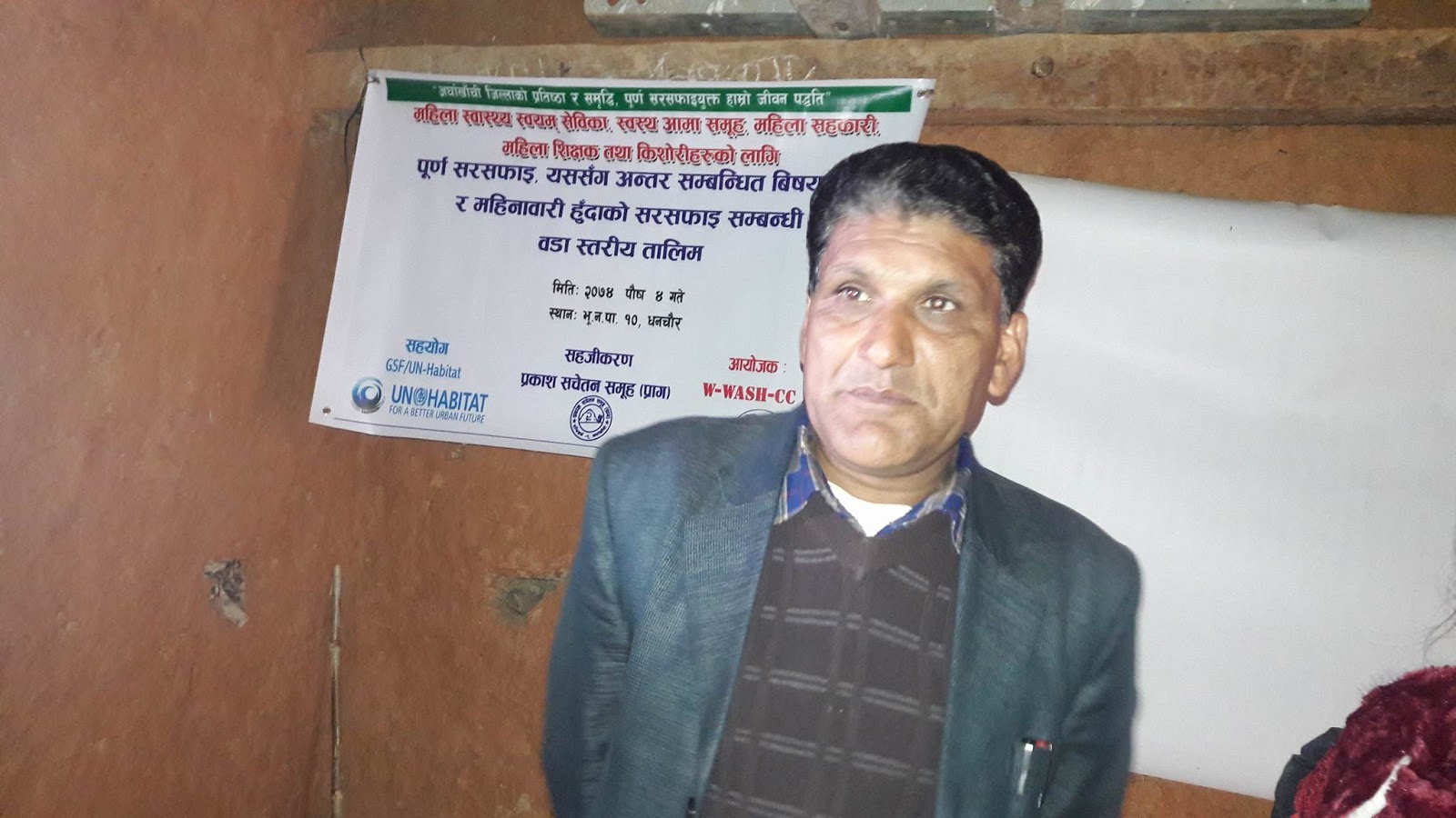 ग्लाेबल सेनिटेसन फण्ड/यु एन ह्याविटाटकाे अार्थिक तथा प्राविधिक सहयाेगमा प्रकाश सचेतन समूह ( प्राग) काे सहजीकरणमा वडा स्तरीय खानेपानी,सरसफाइ तथा स्वच्छता समन्वय समितिकाे अायाेजनामा सञ्चालन  गरिएकाे तालिममा वडा भित्रका सबै महिला स्वास्थ्य स्वयंसेवकहरू, शिक्षिकाहरू, स्वस्थ्य अामा समूह, महिला सहकारी र किशोरी छात्रा सहित ३२ जना सहभागी थिए ।