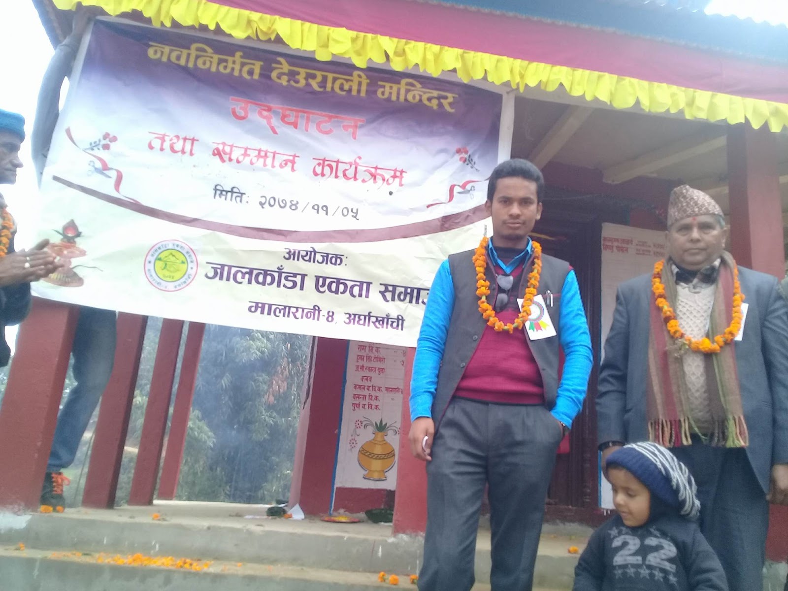 विधिवत रुपमा पूजा सञ्चालन गरी अगाडि बढेको कार्यक्रमको अध्यक्ष कमल विक, मालारानी गाउँपालिकाका अध्यक्ष बालकृष्ण आचार्यको प्रमुख आतिथ्यता, मालारानी ४ का वडा अध्यक्ष विष्णु प्रसाद पोख्रेल र स्थानीय पण्डित ठाकुर प्रसाद रिजालको विशिष्ट आतिथ्यता र मा.के प्रतिनिधि भविश्वर पोख्रेल, ने.का का प्रतिनिधि बिनिराम पोख्रेल, रा. ज .मो प्रतिनिधि कृष्ण सुनार, समाजसेवी दिनेश सुनार, माधव खनाल, लक्ष्मण बिक लगायतको आतिथ्यता रहेको कार्यक्रम विष्णु बि क को स्वागत मन्तव्य र गोपाल कुमार बिक को सन्चालनमा सम्पन्न भएको हो ।