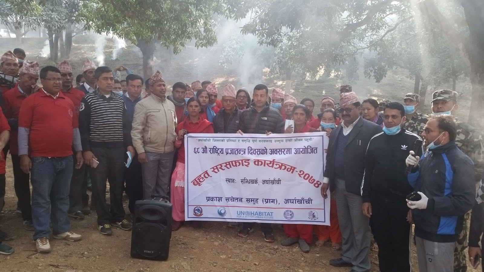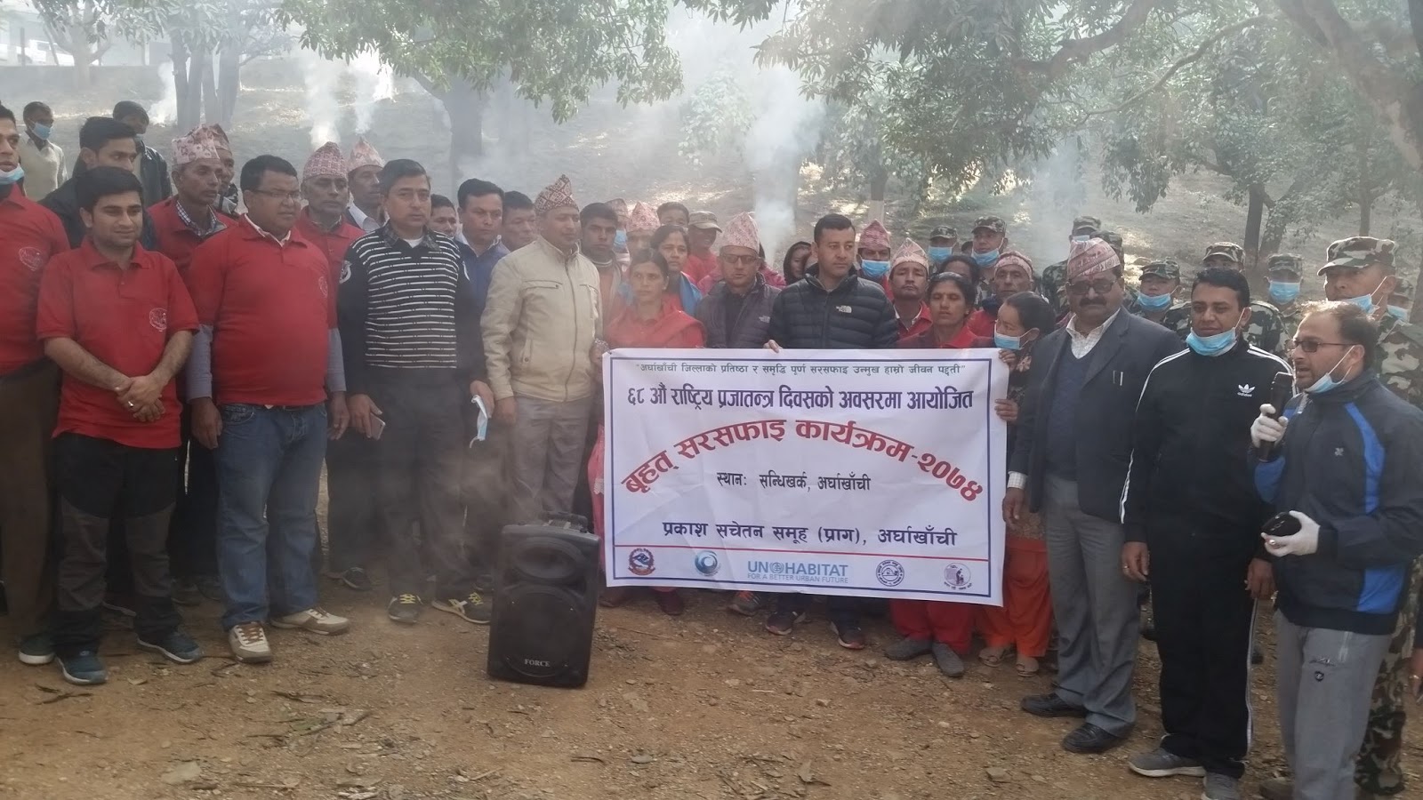 ६८ औ प्रजातन्त्र दिवसको अवसरमा आजोजना गरिएको सरसफाइ कार्यक्रममा सन्धिखर्क नगरपालिका प्रमुख कमल प्रसाद भुसाल, उप प्रमुख ठाकुर बिक, प्रमुख जिल्ला अधिकारी खिमराज भुसाल लगायत स्थानीय बासिन्दाको सहभागिता रहेको थियोे ।