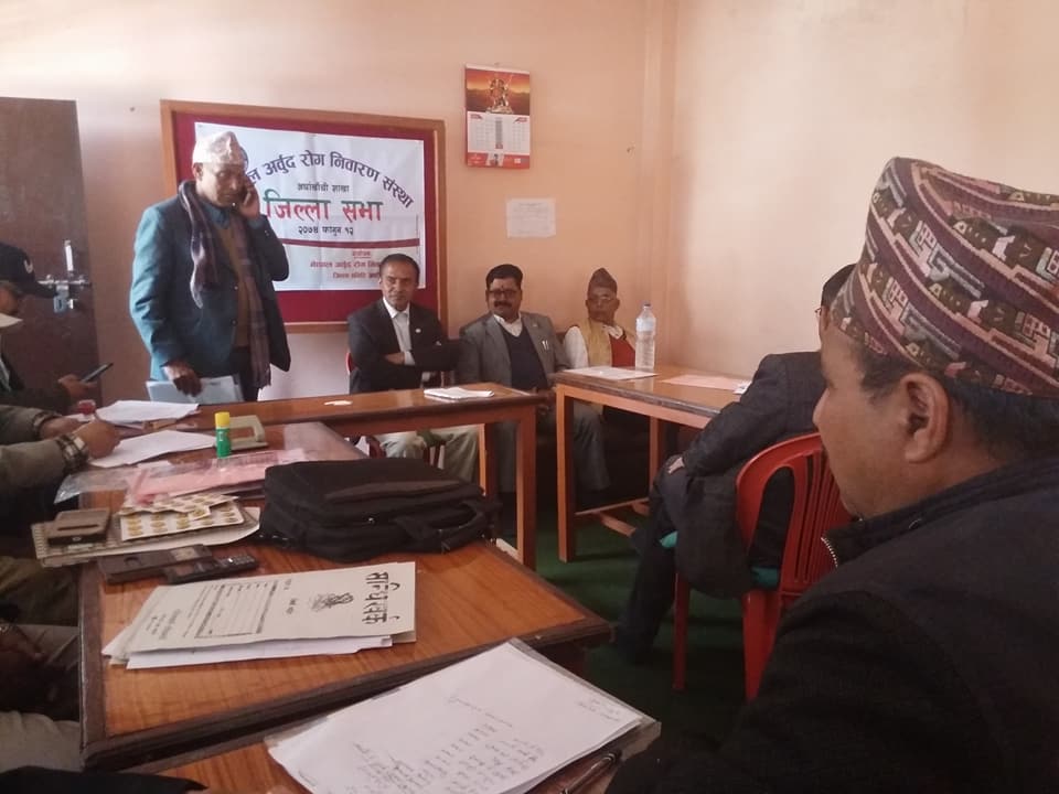 आठौं जिल्ला सभाले पुन: पिताम्बर बन्जाडेको अध्यक्षतामा १३ सदस्यीय जिल्ला समितिको निर्बिरोध चयन गरेको छ । जसमा उपाध्यक्षमा दोर्ण प्रसाद भुसाल, नारायण प्रसाद पौडेल, सचिबमा कुशल भुसाल कोषाध्यक्षमा राजेन्द भुसाल रहेका छन् । यस्तै नवनिर्बाचित सदस्य हरुमा श्रीकृष्ण भुसाल ,नेत्र प्रसाद भुसाल,लिलाराम गौतम ,बिजुला रायमाझी ,कृष्ण प्रसाद बन्जाडे ,शान्ता खत्री ,सहयोगी बि. सि. रहेका छन् ।