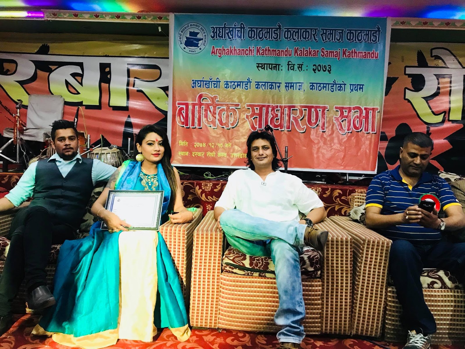 काठमाडौंको दरवार रोधी घरमा सम्पन्न भएको सभालाई प्रमुख अथिति माओवादी केन्द्रकी प्रवक्ता पम्फा भुसालले गरेकी थिईन् । कार्यक्रममा विशिस्ट अथितिहरु राष्ट्रीय लोकदोरी प्रतिष्ठाका अध्यक्ष लोक गायक बर्दि पंगेनी, नायक तथा चलचित्र कलाकार संघका अध्यक्ष नबल खडका, राष्ट्रिय लोकदोरी गित प्रतिष्ठानका निबर्तवान अध्यक्ष चन्द्र शर्मा, लोक दोहोरी प्रतिष्ठान उपत्यका समन्वय समितिका अध्यक्ष पिन सापकोटा लगायतको उपस्थिती रहेको थियो ।
