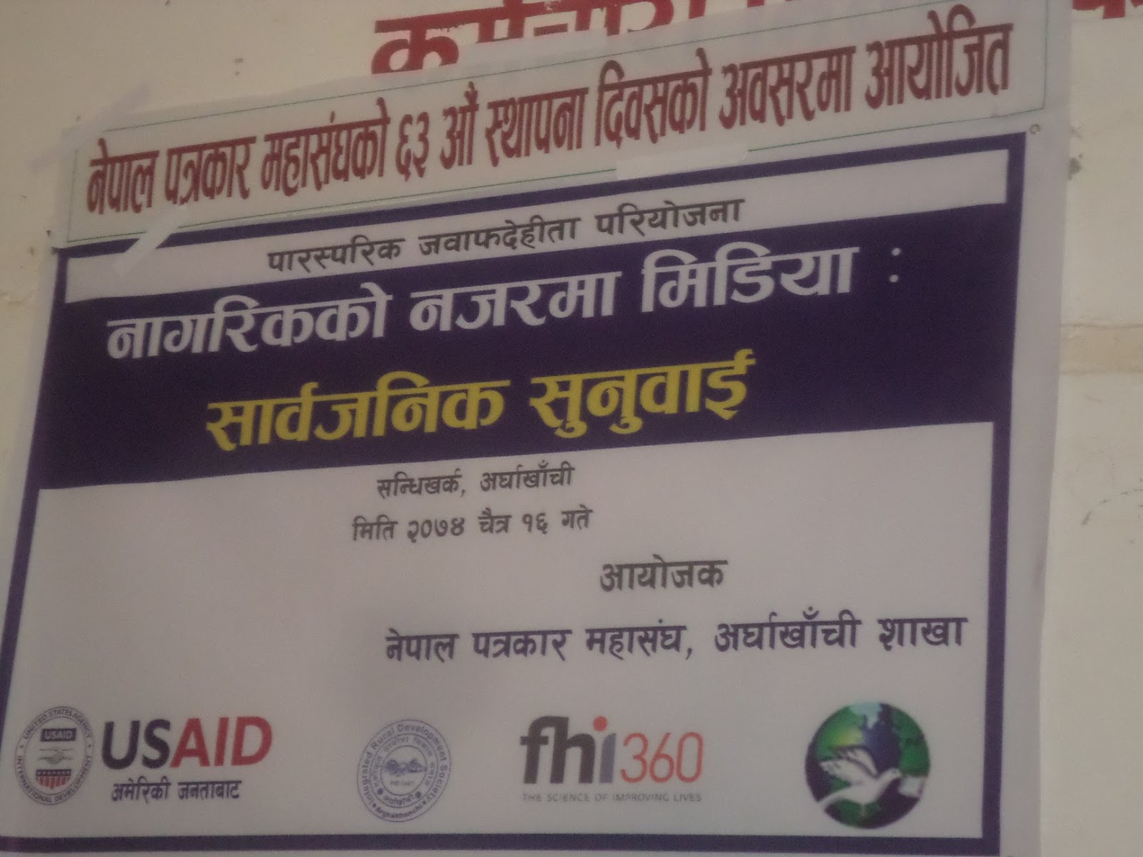 नेपाल पत्रकार महासंघ केन्द्रीय कार्यालय र FHI360 सँगको सम्झौता अनुरुप जिल्लामा भएको कार्यक्रममा जिल्लाका सरोकारवाला निकायहरुको उत्साहजनक उपस्थिती रहेको थियो । कार्यक्रम प्रस्तोता पाणिनी बहुमुखी क्याम्पस अर्घाखाँचीका सहायक प्राध्यापक सुरज सारुले गरेका थिए ।