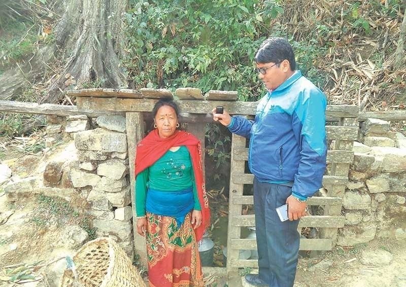 जलुके जुवाकोटको कुवामा पानीको दु:ख बताउँदै हुमकला छामिछाने ।
