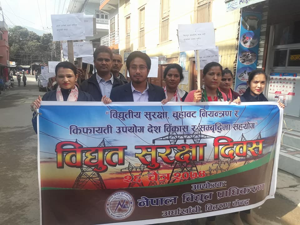 सन्धिखर्क, अर्घाखाँची । अर्घाखाँची जिल्लामा विधुत सुरक्षा दिवस आज भब्य रुपमा मनाईएको छ ।