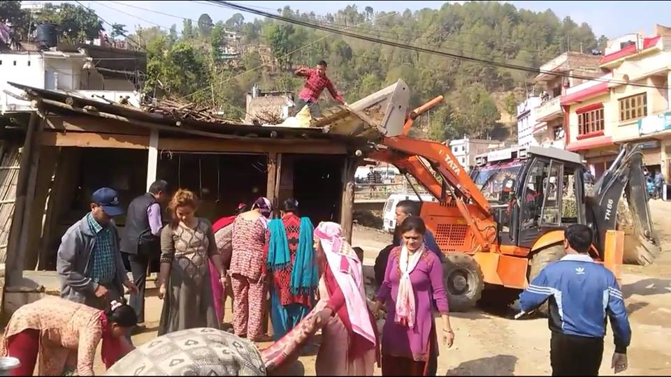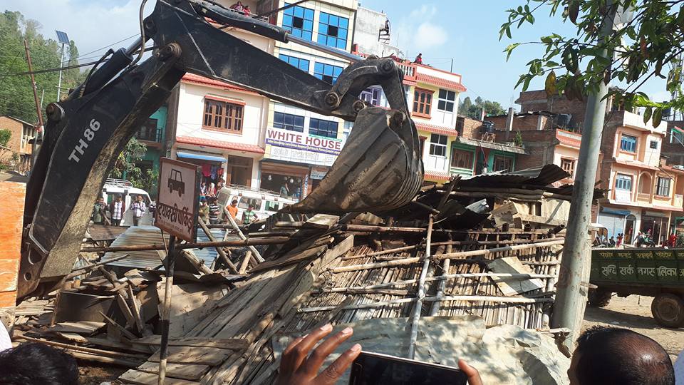 नगरपालिकाले घर भत्काउन दिएको समयावधिमा भत्काउन आलटाल गरेपछि डोजर लगाएर घर भत्काएको हो। नगरपालिकाले पुरन बहादुर थापाकाे झुप्राे समेत भत्काएको छ ।
