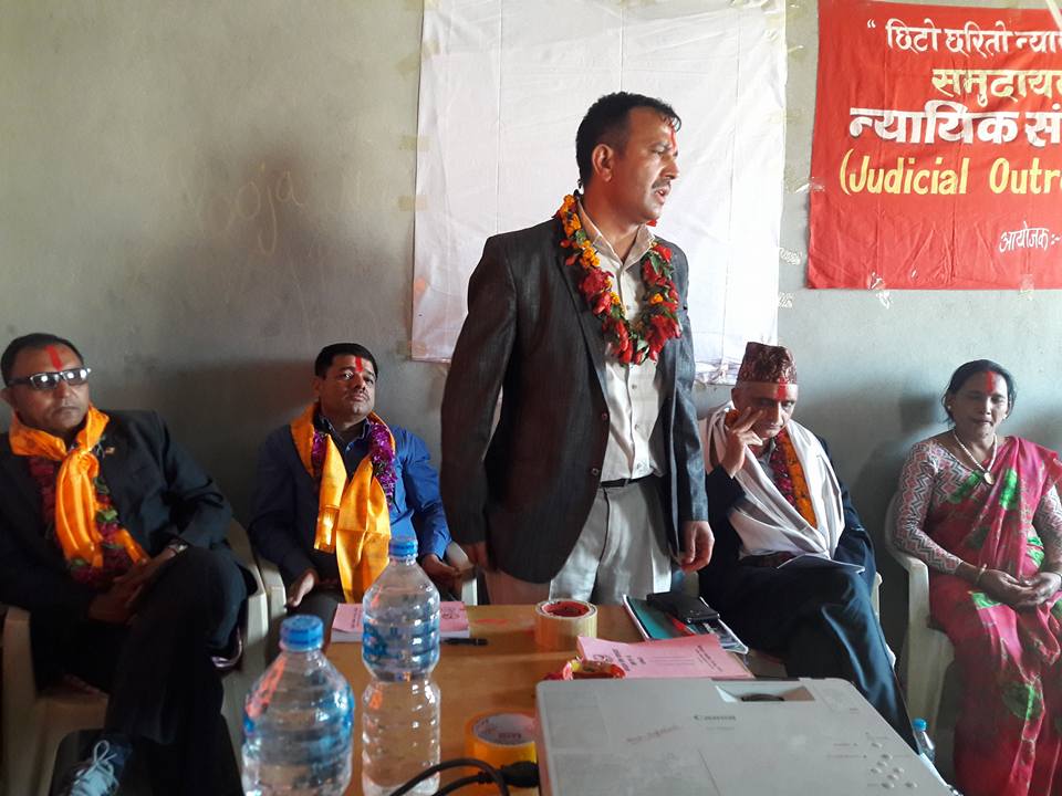 पौडेलले छत्रदेब गाउँपालिकाको सार्बजनिक मा. बि.मा भएको न्यायिक संवाद कार्यक्रम अन्तरगत समुदायमा न्यायाधीश कार्यक्रम मा उक्त बिचार ब्यक्त गर्नु भएको हो।उहाँले जनप्रतिनिधिले पनि आफ्नो गाउँ समाजका झैझगडा ,सानातिना मुद्दालाई निष्पक्ष रुपमा निरुपण गर्न सक्दछन भनेर नै संबिधानमा नै स्थानीय निकाय भित्र नै न्यायिक समितिको ब्यबस्था गरेको धारणा राख्नु भएको थियो।