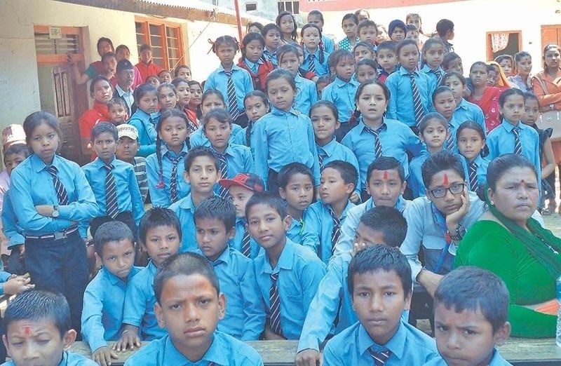 चुत्राबेंसीस्थित गंगा आधारभूत विद्यालयमा भर्ना भएका विद्यार्थी ।