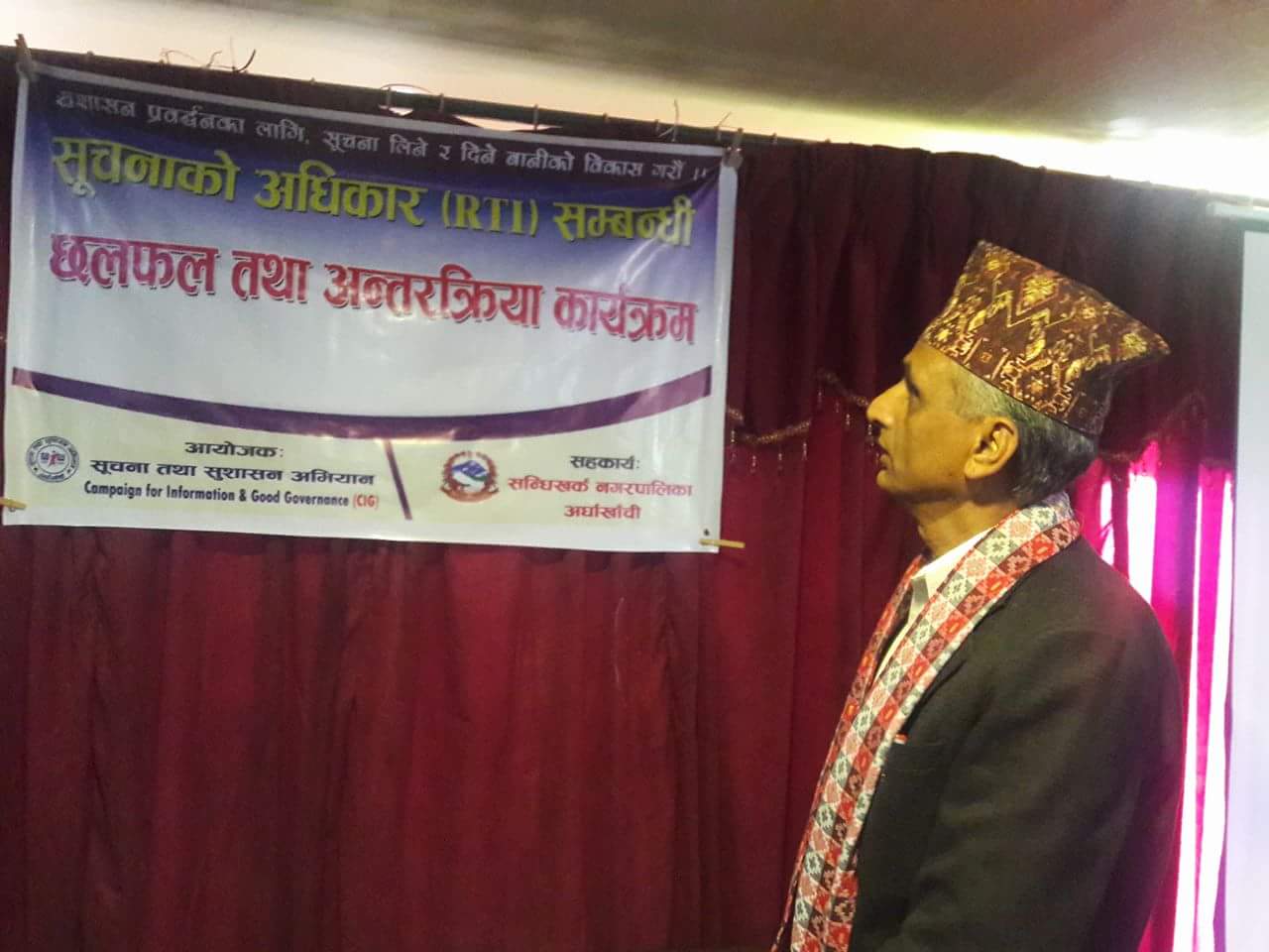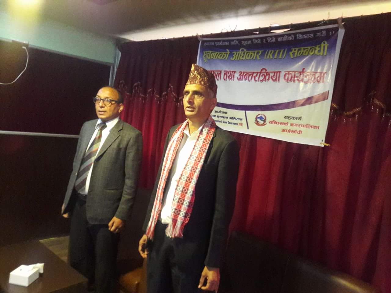 अध्यक्ष तथा सूचना अभियन्ता मुक्तिनाथ भुसालले सूचनाको अधिकार सम्बन्धि जानकारी दिएका थिए । कार्यक्रममा समाज सेबी पत्रकार सहयोगी बीसी लगायतलाई सम्मान गरिएको थियो ।
