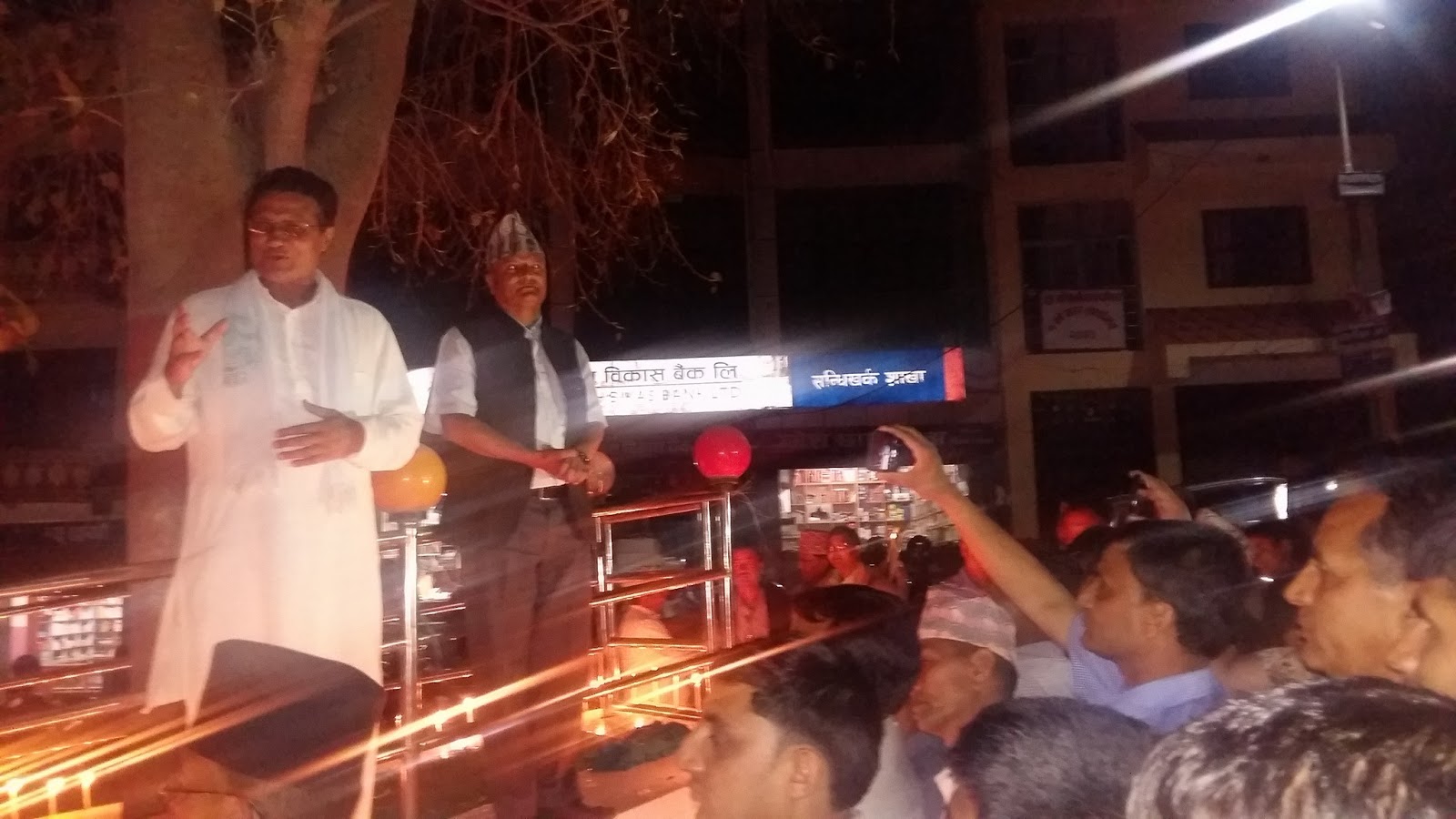 शान्ती बगैंचा चोकमा दर्जनौ नेपाल कम्युनिष्ट पार्टीका नेता कार्यकर्ताले द्विप प्रज्वलन गरेका हुन् ।