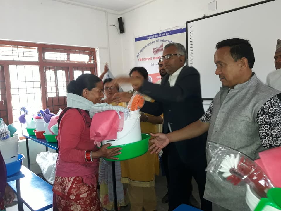 कार्यक्रममा वार्ड अध्यक्ष मोतीजंग रायमाझीले सरसफाई सम्बन्धि सामाग्री बितरण गरेका थिए ।