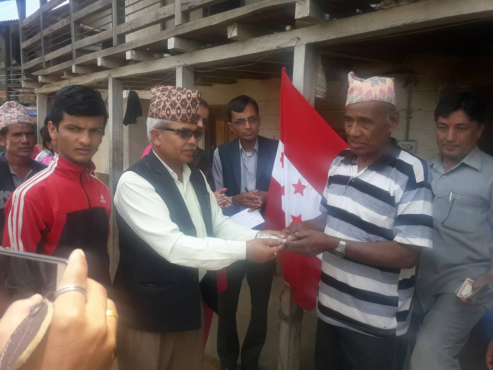 आफ्नो दैनिकी चलाउँने खर्च बचाएर नेपाली कांग्रेसको भातृ संगठन नेपाल जनसम्पर्क समिती बहराइनका अध्यक्ष पदम सुन्दर गुरुङको नेतृत्वमा संकलित ४१ हजार एक रुपैँया नेपाली कांग्रेसका जिल्ला सभापती विष्णु मुस्कानले प्रेमबहादुरका बुबा कृष्णबहादुर राक्से मगरलाई हस्तान्तरण गर्नु भएको हो मुस्कानले कांग्रेस सवैको दुःख सुखमा साथ दिने बताउदै अागामि दिनमा पनि सहयोग गर्ने प्रतिबद्धता ब्यक्त गर्नु भएको छ। सोही कार्यक्रममा नै कांग्रेस सन्धिखर्क नगरपालिका बार्ड नम्बर ३ बाट संकलीत २१ हजार २ सयँ २० रुपैँया पनि कार्यक्रम का प्रमुख अतिथि बिस्नु खनाल मुस्कान र वडा अध्यक्ष लिला राम गौतमले सयुक्त हस्तान्तरण गरेका हुन ।