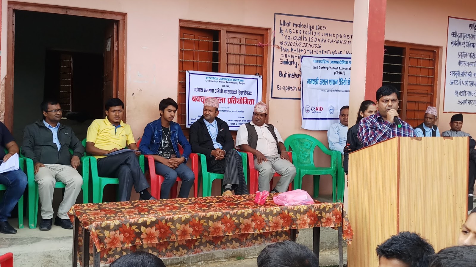 श्रोता समुहका सचिव कृष्ण पाण्डेको अध्यक्षता, सहजकर्ता लक्ष्मी पाण्डेको सञ्चालन रहेको कार्यक्रममा परियोजनाका जिल्ला कार्यक्रम अधिकृत बसन्त श्रेष्ठले बिषयवस्तु तथा अवस्थाको बारेमा प्रकाश पार्नुभएको थियो ।
