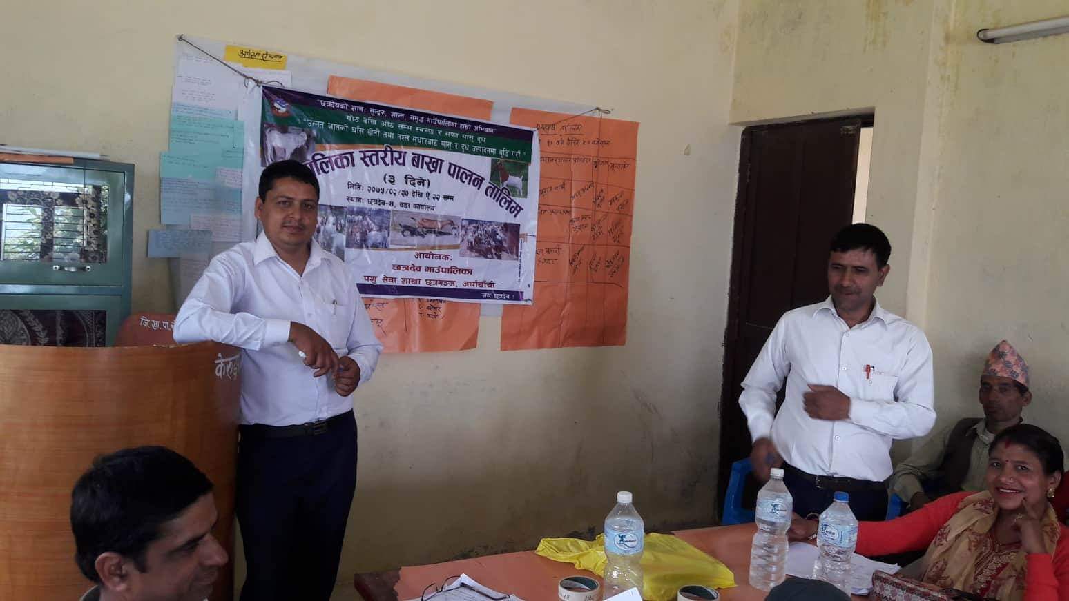 तालिममा अर्घातोष पशुसेवा केन्द्रका प्रमुख उमानाथ पन्थी, पशुसेवा शाखाका संयोजक नारायण खनालले प्रशिक्षण दिएका छन् ।