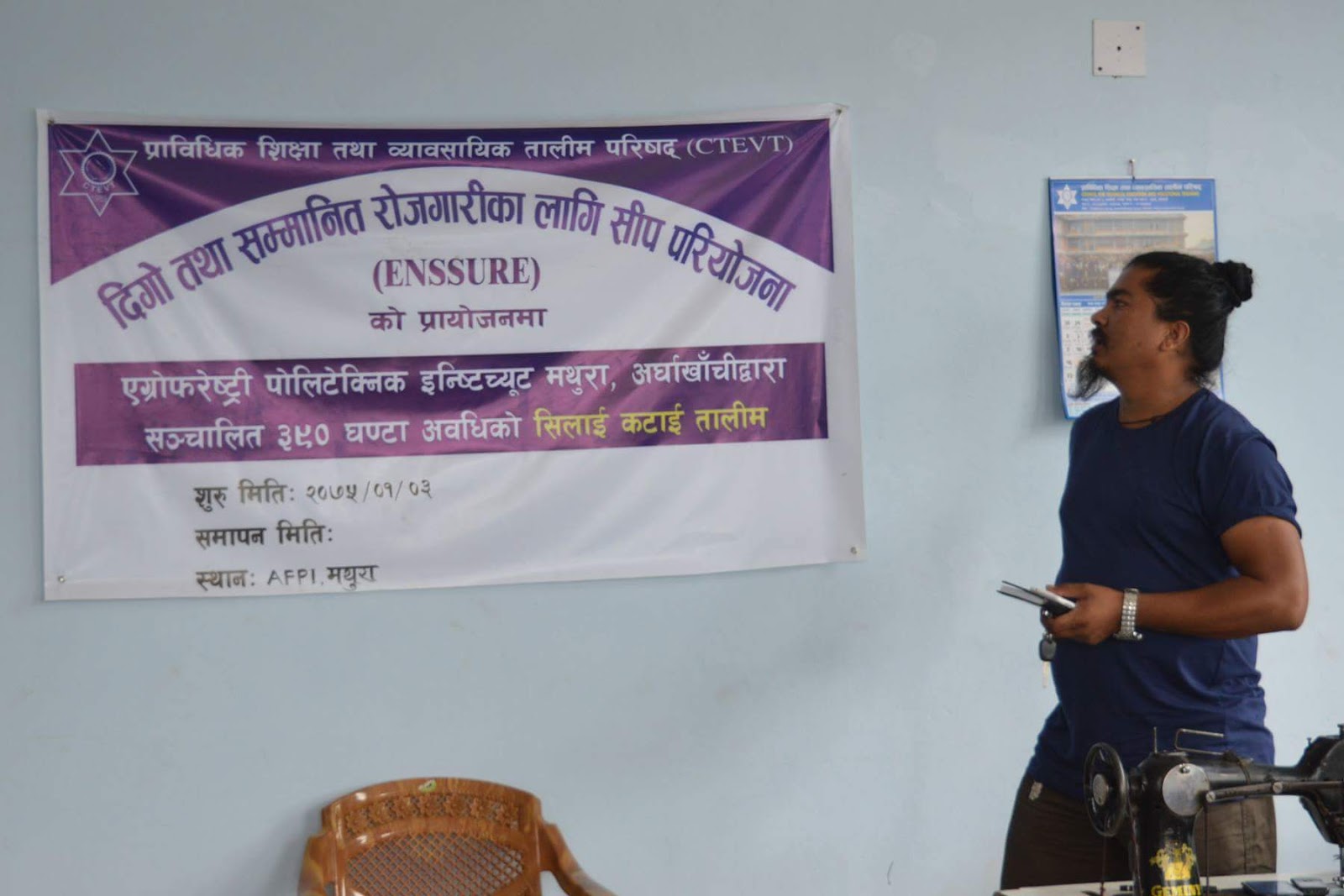दिगो तथा सम्मानित रोजगारका लागि सिप परियोजनाको प्रायोजनमा एग्रो पोली टेक्निकल इन्स्टिचुट मथुराद्दारा सन्चालित १०५ दिने तालिम आगामी असार १५ गतेसम्म चल्ले छ ।