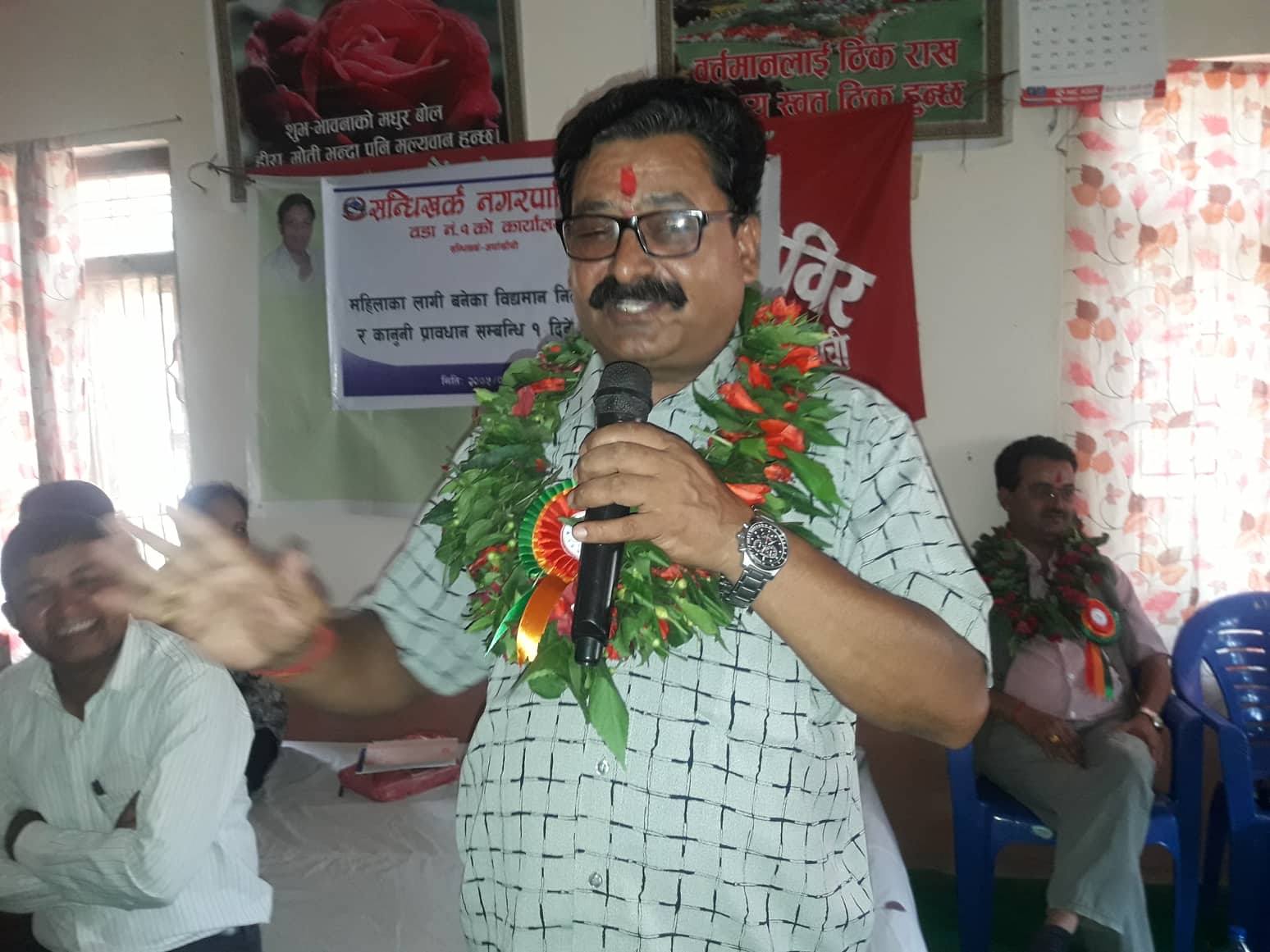 सो अवसरमा सन्धिखर्क नगरपालिकाका नगरप्रमुख कमल प्रसाद भुसालले कृर्षि तथा पशुपालन सिपमुलक तालिमको बिकास गरि बेरोजगारी समस्या समधान नगरे सम्म बिकासले दुर्त गति लिन नसक्ने बताउनु भएको छ । उहाले नगरपालिका भित्रका सबै वार्डहरुमा  महिला लक्षित कार्यक्रम महिला ससक्तिकरण कार्यक्रम तथा कृर्षि पसुपालन सिपमुलक तालिमलाई अाफुहरुले पहिलो प्राथमिकता दिएको बताउदै तालिममा सिकेका कुराहरु ब्याभारमा उतार्न अाग्रह गर्नु भएको हो ।