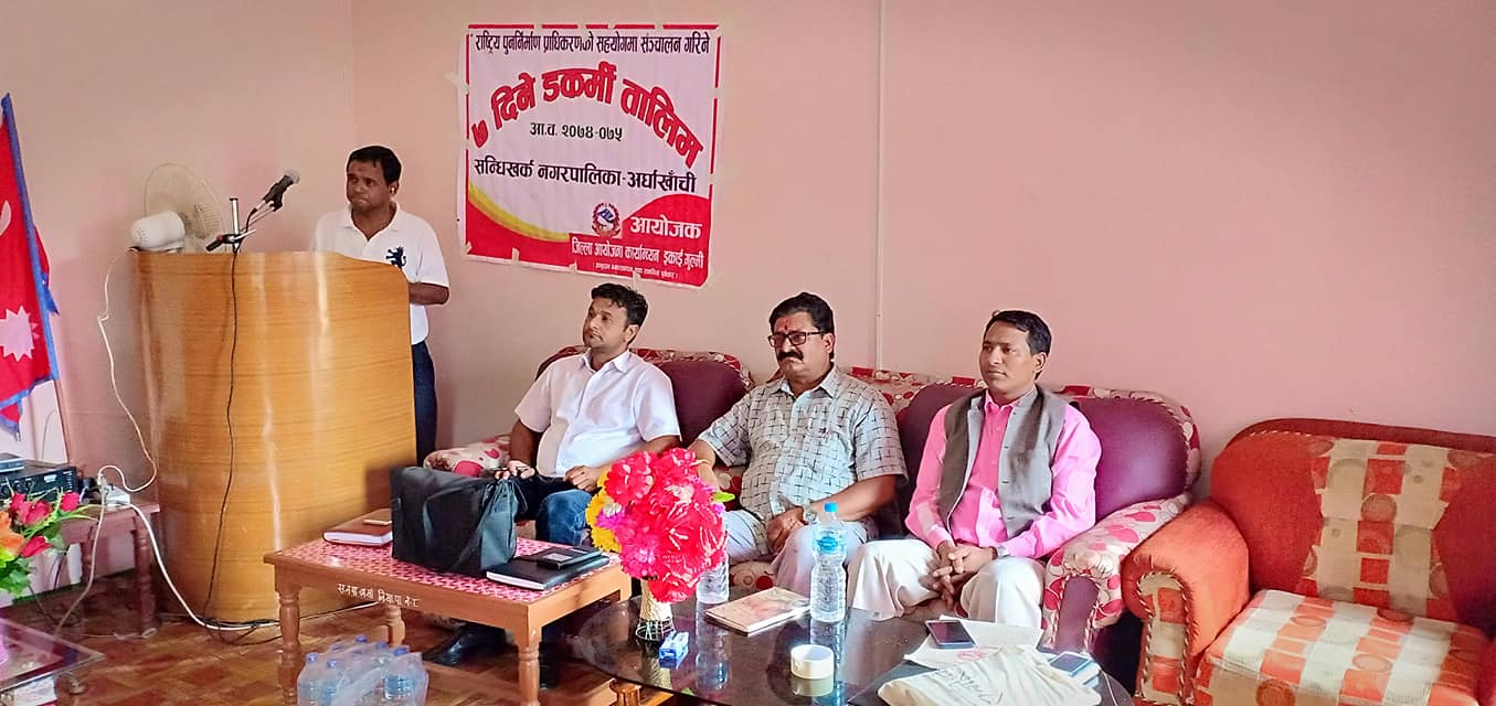 डकर्मि तालिमकाे सन्धिखर्क नगर प्रमुख कमल प्रसाद भुसालले उद्घाटन गरेको थिए । तालिममा उपप्रमुख ठाकुर कुमार विक लगायतको उपस्थिती रहेको थियो ।