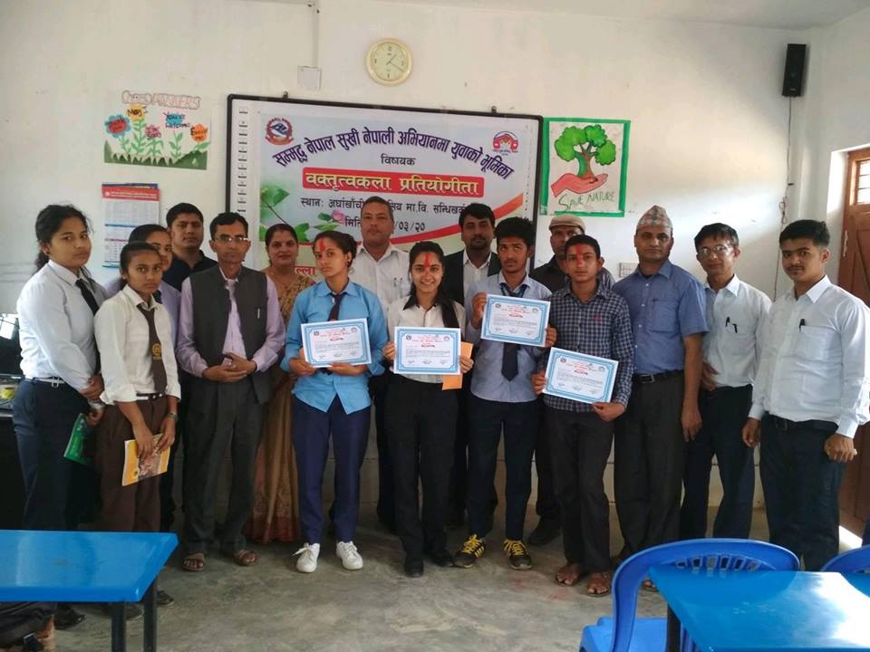सन्धिखर्क, अर्घाखाँची । युवा प्रतिभा पहिचान अन्तर्गत जिल्ला युवा समितिको कार्यालय, अर्घाखाँचीको आयोजनामा सम्मृद्ध नेपाल, सुखी नेपाली अभियानमा युवाको भुमिका विषयक बक्तृत्वकला प्रतियोगिता सम्पन्न भएको छ ।