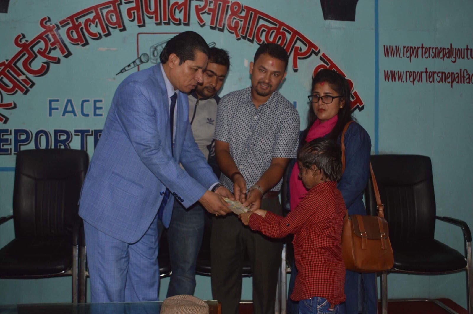 रिपोर्टर्स क्लब नेपालमा अर्घाखाँचीकै छत्रदेव गाउँपालिकाका युवाहरु सचिन पाण्डे, शिवदेव पाण्डे र क्लबका अध्यक्ष ऋषि धमलाले संयुक्त रुपमा उक्त रकम हस्तान्तरण गरेका हुन । शिवदेव पाण्डे यसअघि पनि छात्रदेबकै फरक क्षमताका शिक्षक कृष्णप्रसाद पौडेललाई सहयोग जुटाउने अभियान चलाएका थिए ।